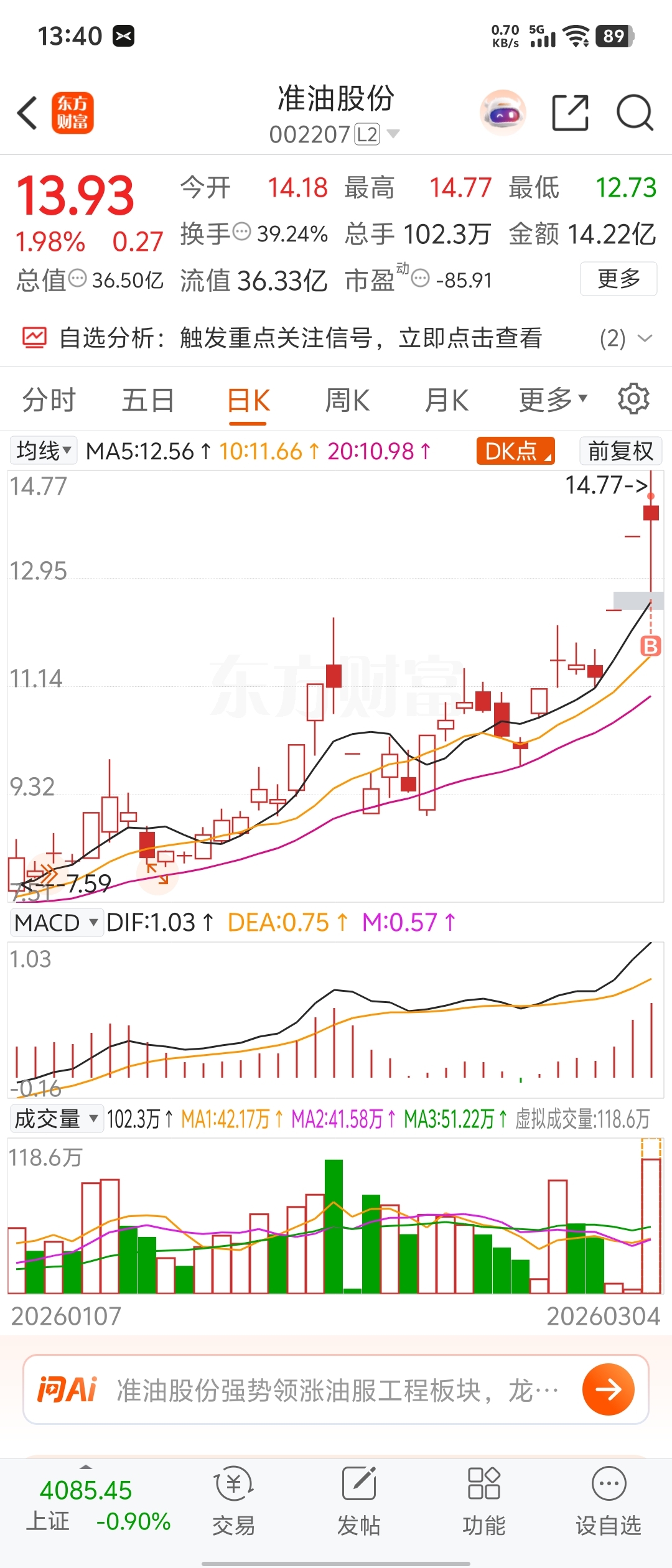 $准油股份(SZ002207)$ 会被套吗?