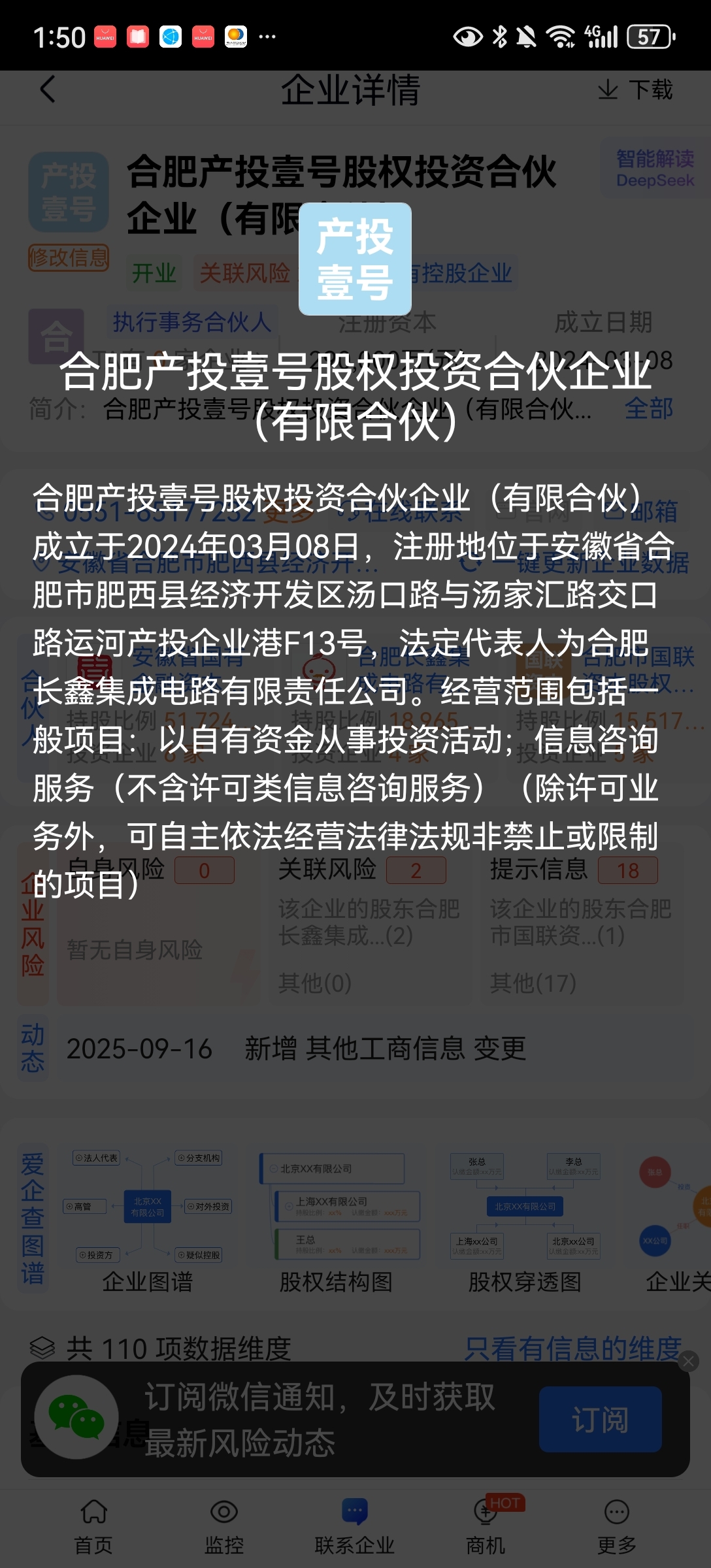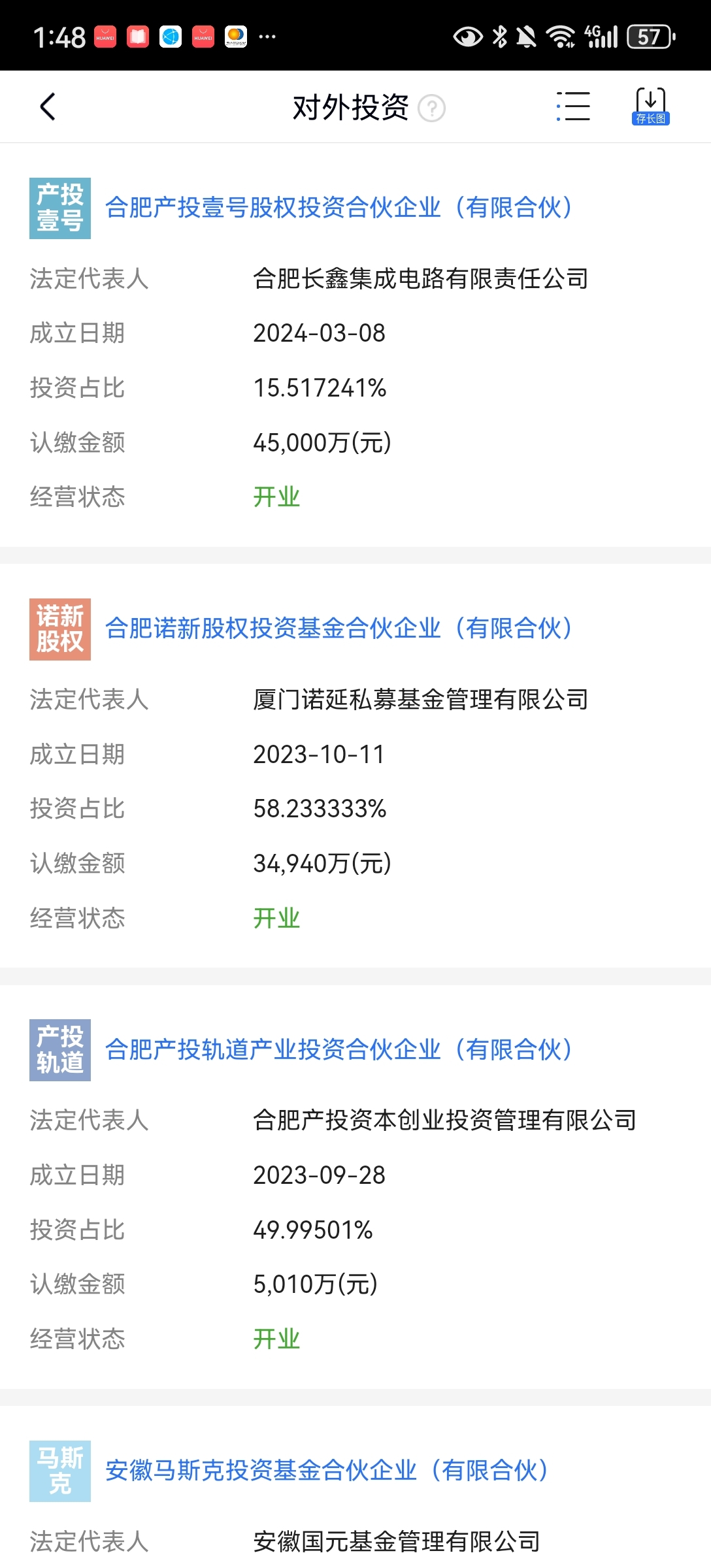 合肥城建子公司合肥产投壹号股权投资合伙企业(有限合伙)中有15.517%的认缴金额为长鑫存储,即长鑫存储6750万元作为有限合伙人,合肥城建间接持有16.6的长鑫存储股权