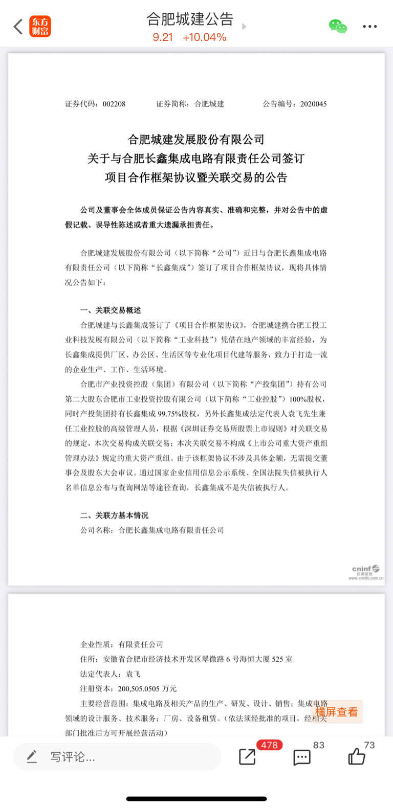 人家2020年就7月14号就开始发公告了。2020年就开始布局长鑫集成了。