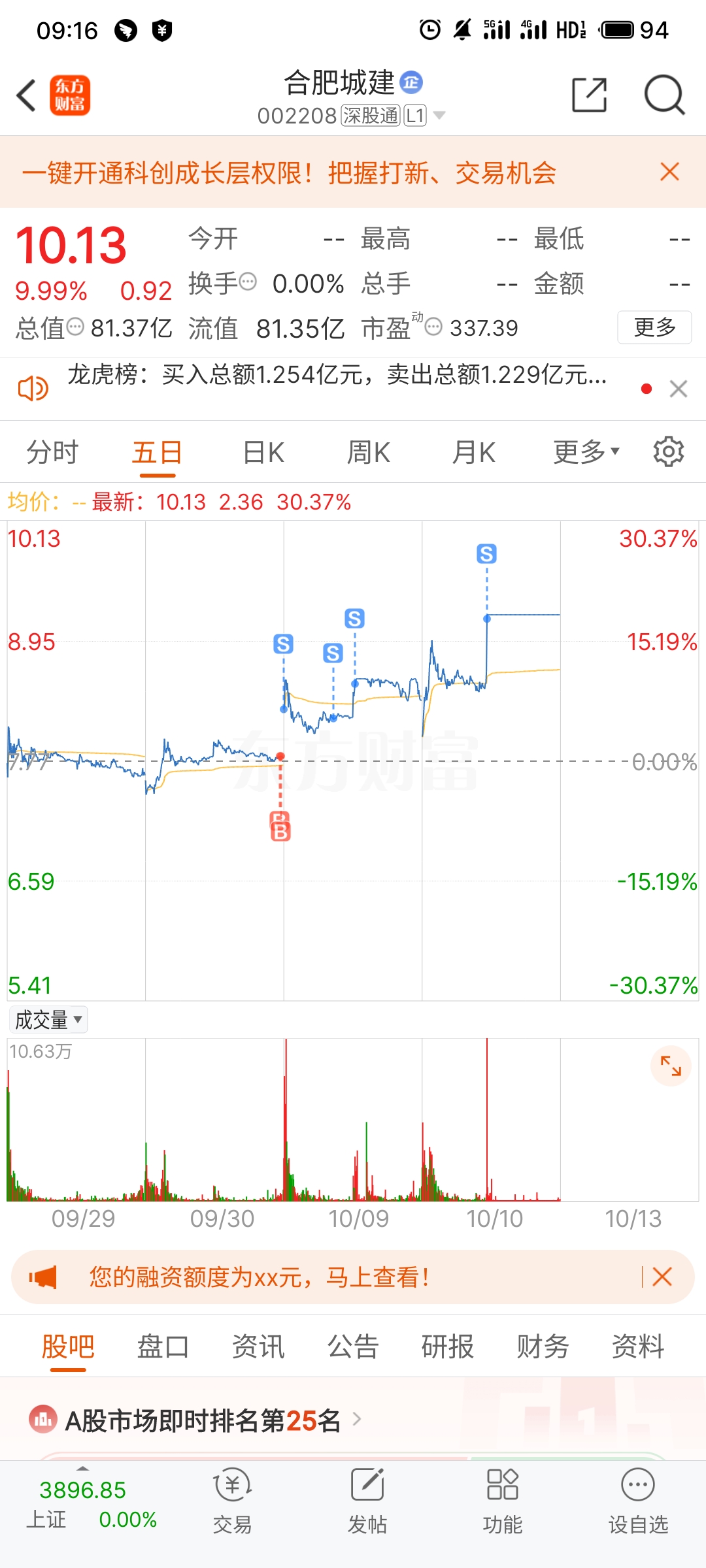 $合肥城建(SZ002208)$ 今天板上再出两层货谢谢各位