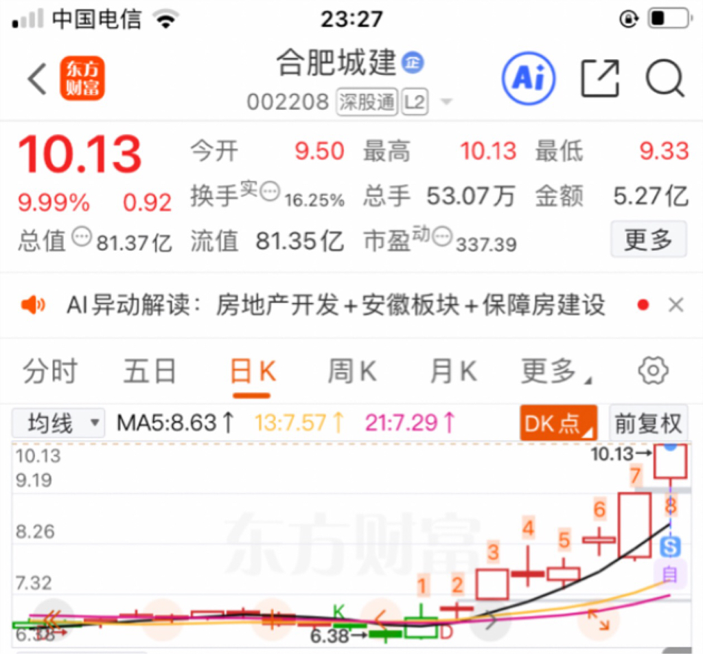 $合肥城建(SZ002208)$ 今天怕受大盘拖累,估计是又卖飞了