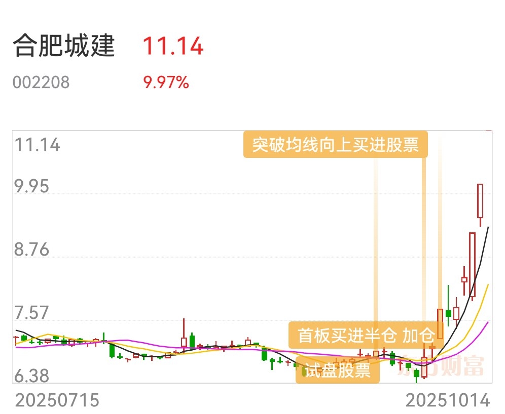 军哥,10月操盘合肥城建,做好过程提前准备,专注操盘。1.选股试盘2.突破均线向