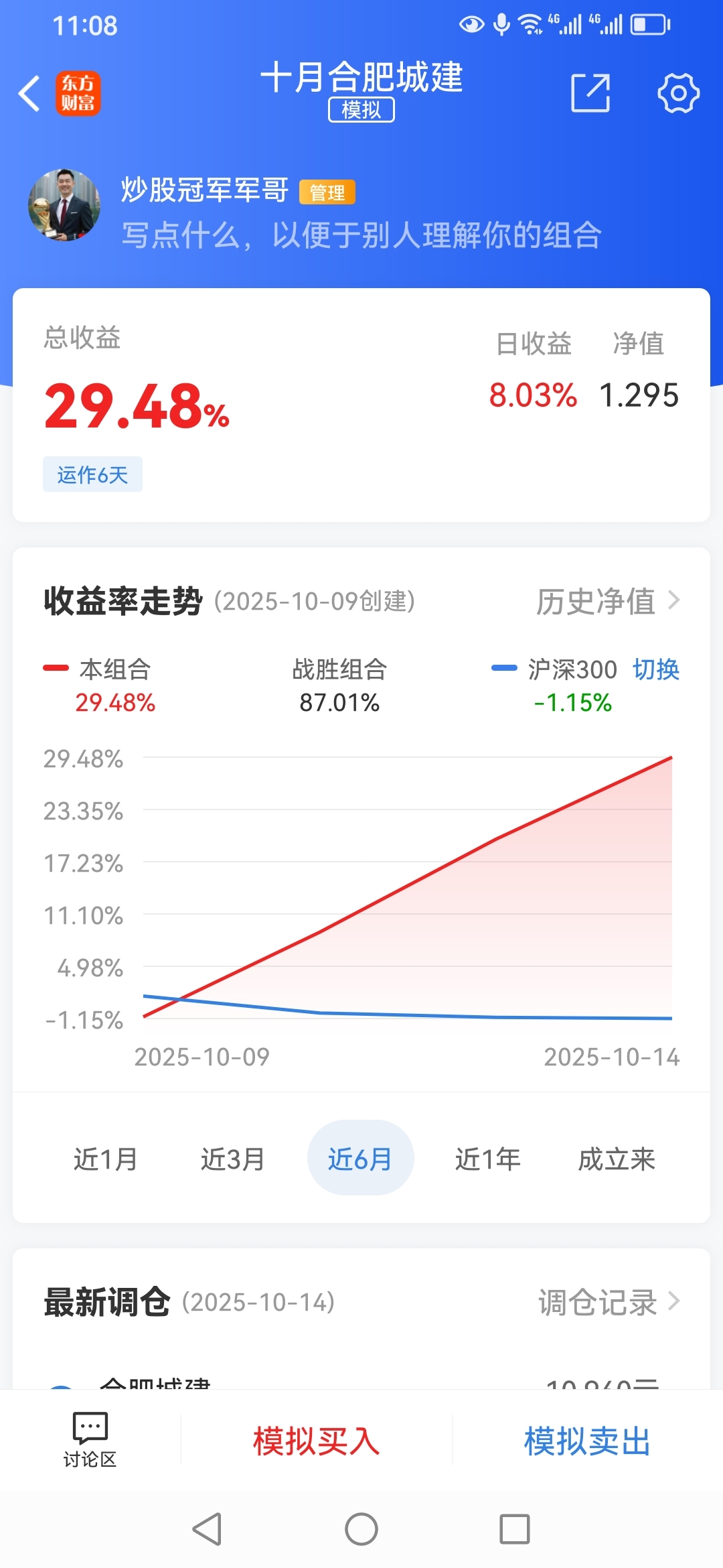 军哥,合肥城建,卖出了,30%利润。10月任务已经提问完成。