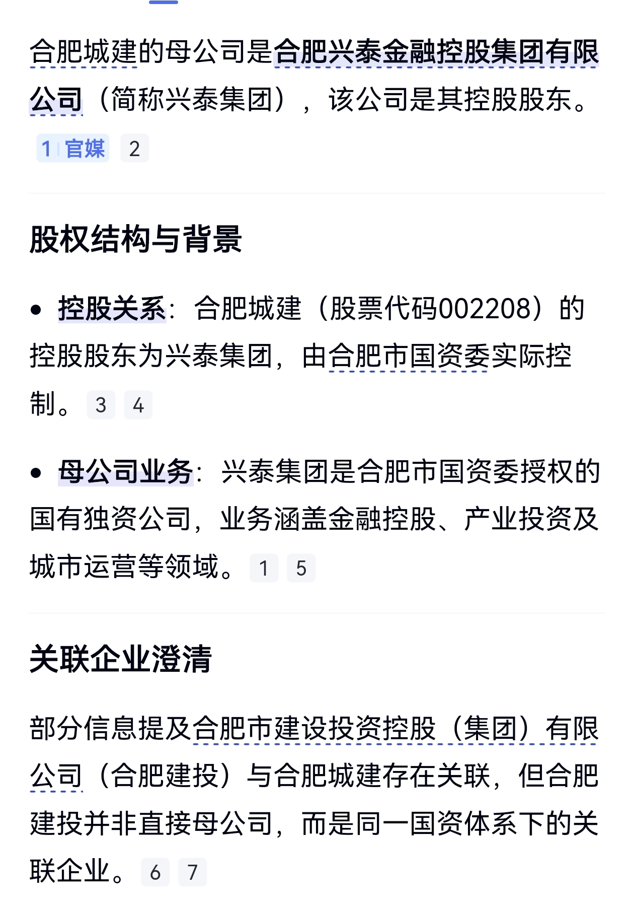 我之前也是以为合肥城建的母公司是合肥国资委,后面认真查了一下,才知道合肥城建的上