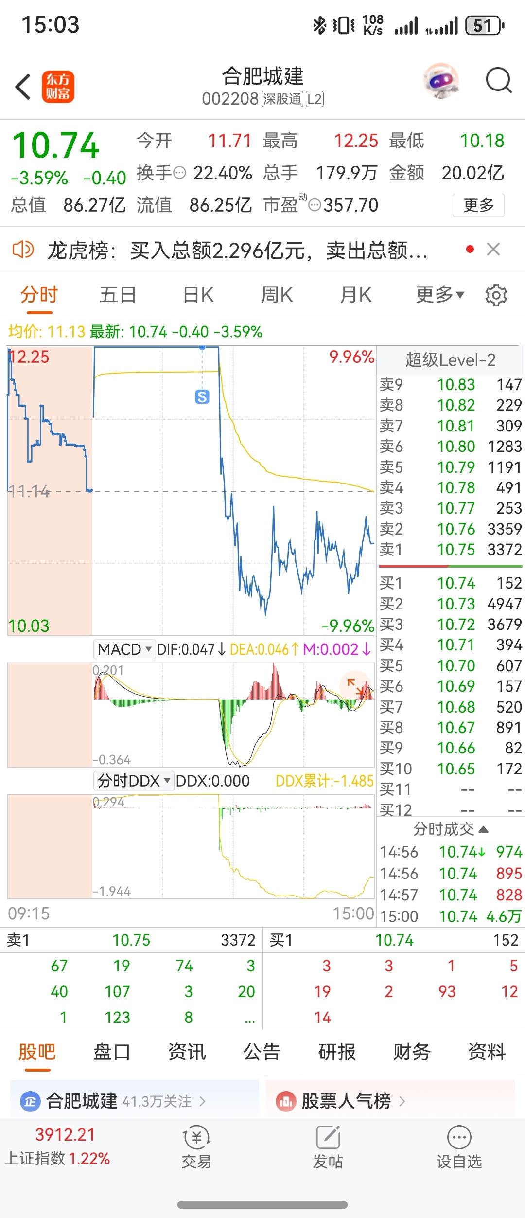 $合肥城建(SZ002208)$ 对不起,我给你卖崩了