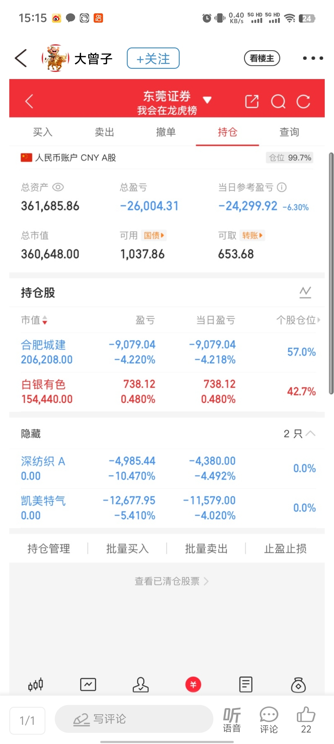 $合肥城建(SZ002208)$ 顶级游资大曾子,比陈小群,炒股养家,章盟主这些一线游资还高一个等级,新一代悟道者,今天买入$白银有色(SH601212)$ ,加仓合肥