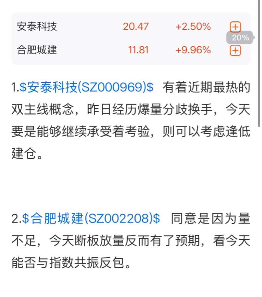 $合肥城建(SZ002208)$ 早盘按预案,发现竞价抢筹,所以开盘进了安泰和合肥。#炒股日记# #复盘记录# #强势机会# #股市怎么看#