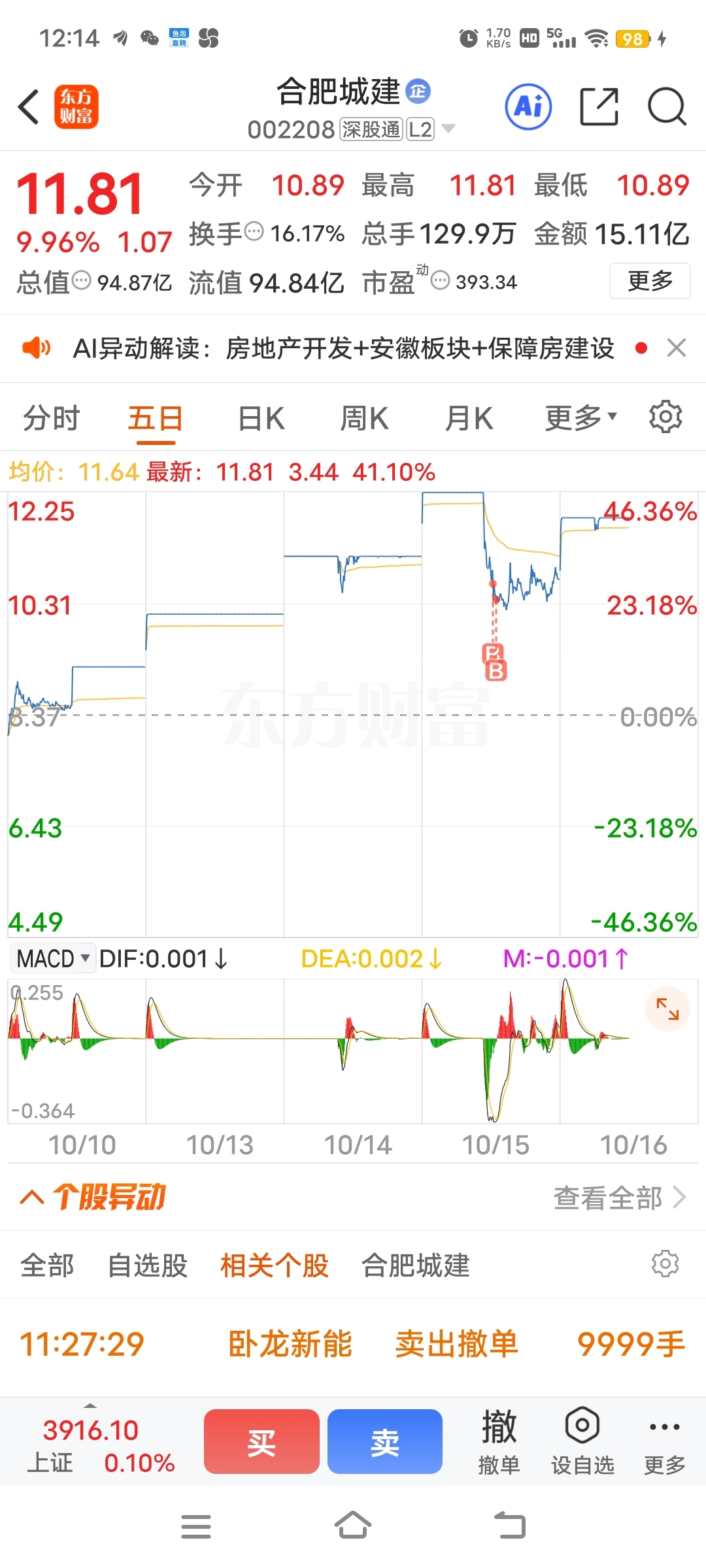 $合肥城建(SZ002208)$ 今天不动了