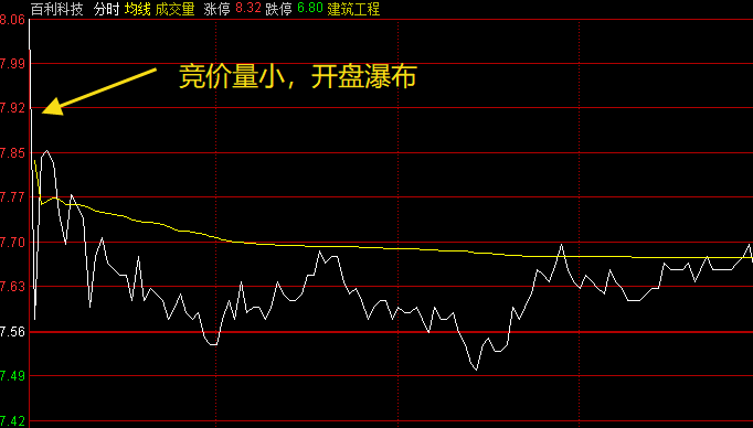 百利科技:今天高开幅度过大,但没有匹配相应的竞价量。老秦盘前给出的标准是3万手左右,实际只有2万手。所以,不具备介入条件,临盘放弃。这里分享一个知识点:量价匹配。放到分时层面,就是竞价量和高开低开的幅度要匹配,高开得多,必须配合足够的量级,否则就是有人集合诱多,容易开盘后兑现,今天实际就是这样的走势。