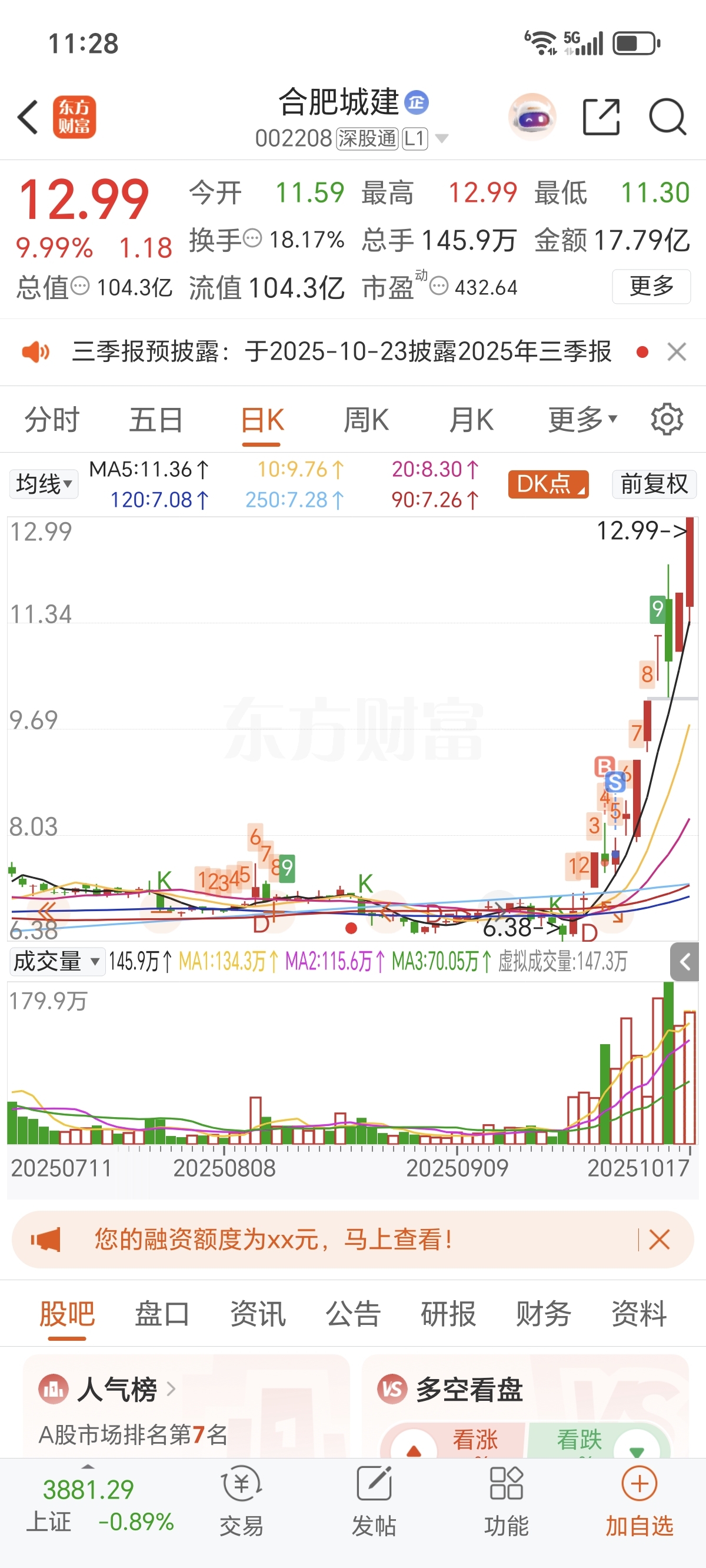 $合肥城建(SZ002208)$ 卖什么涨什么,买什么崩什么