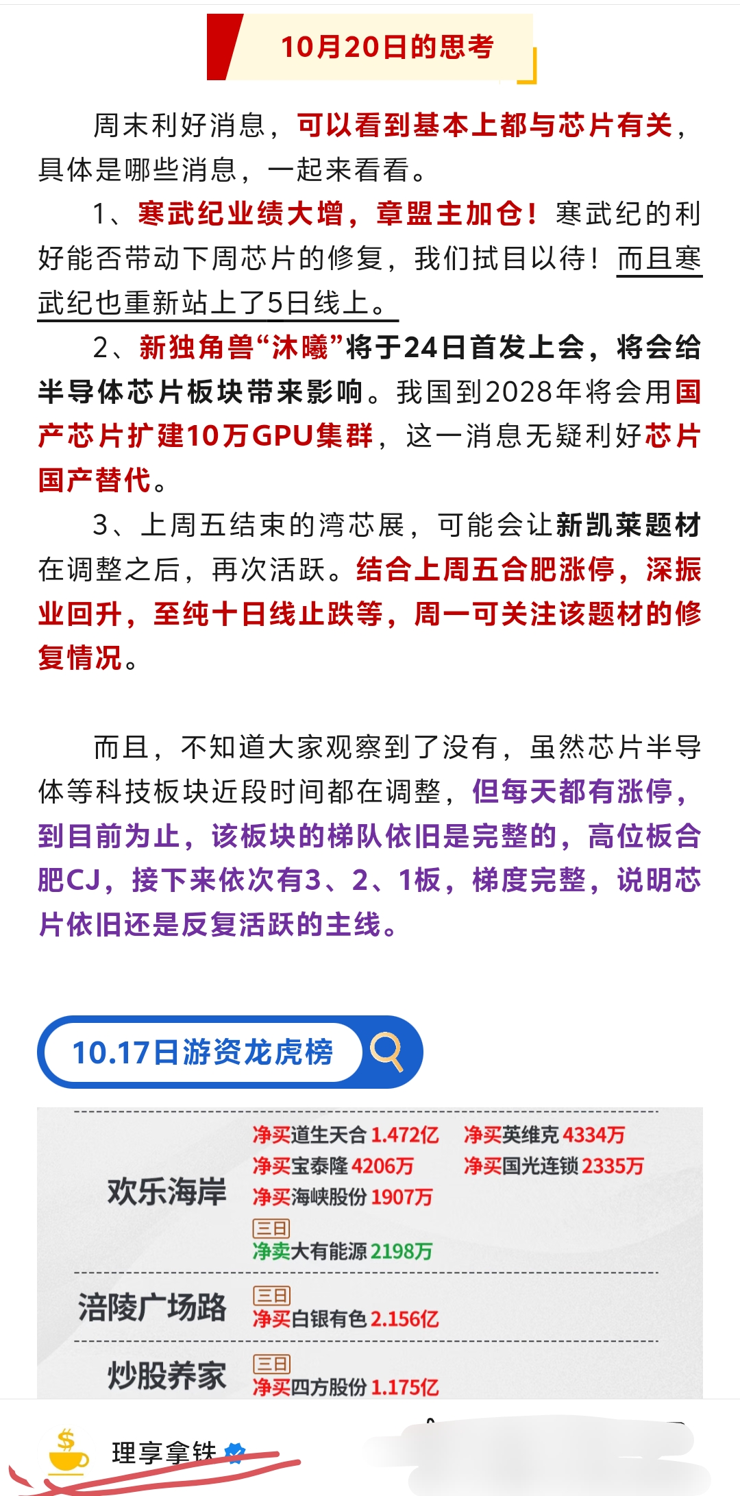 10.20日周一盘前几点重要发现和思考!