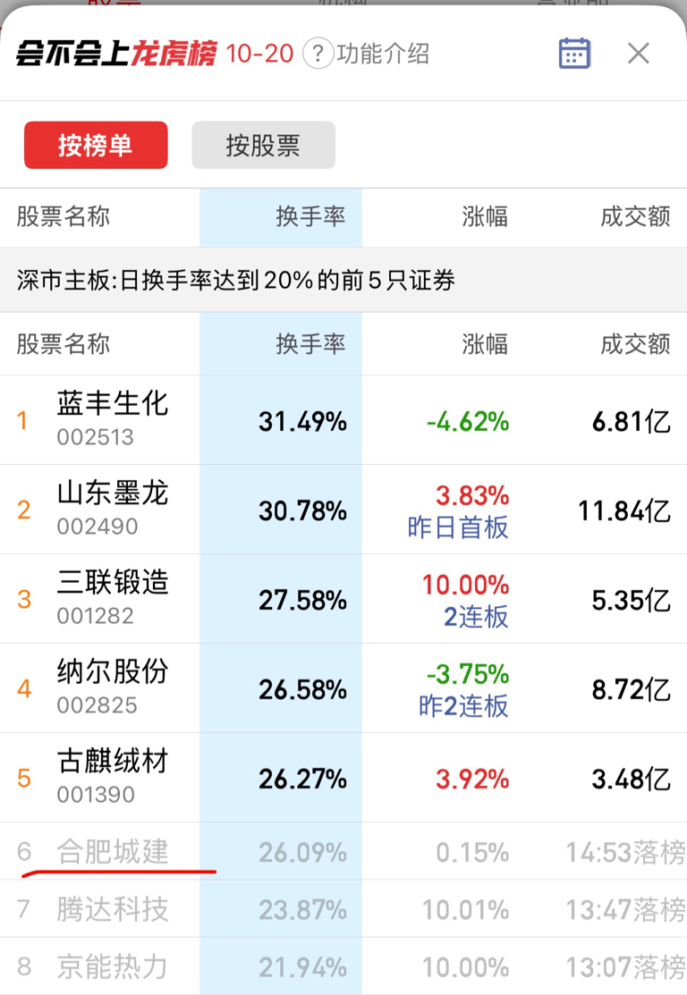 $合肥城建(SZ002208)$ 今天没榜,我觉得是好事