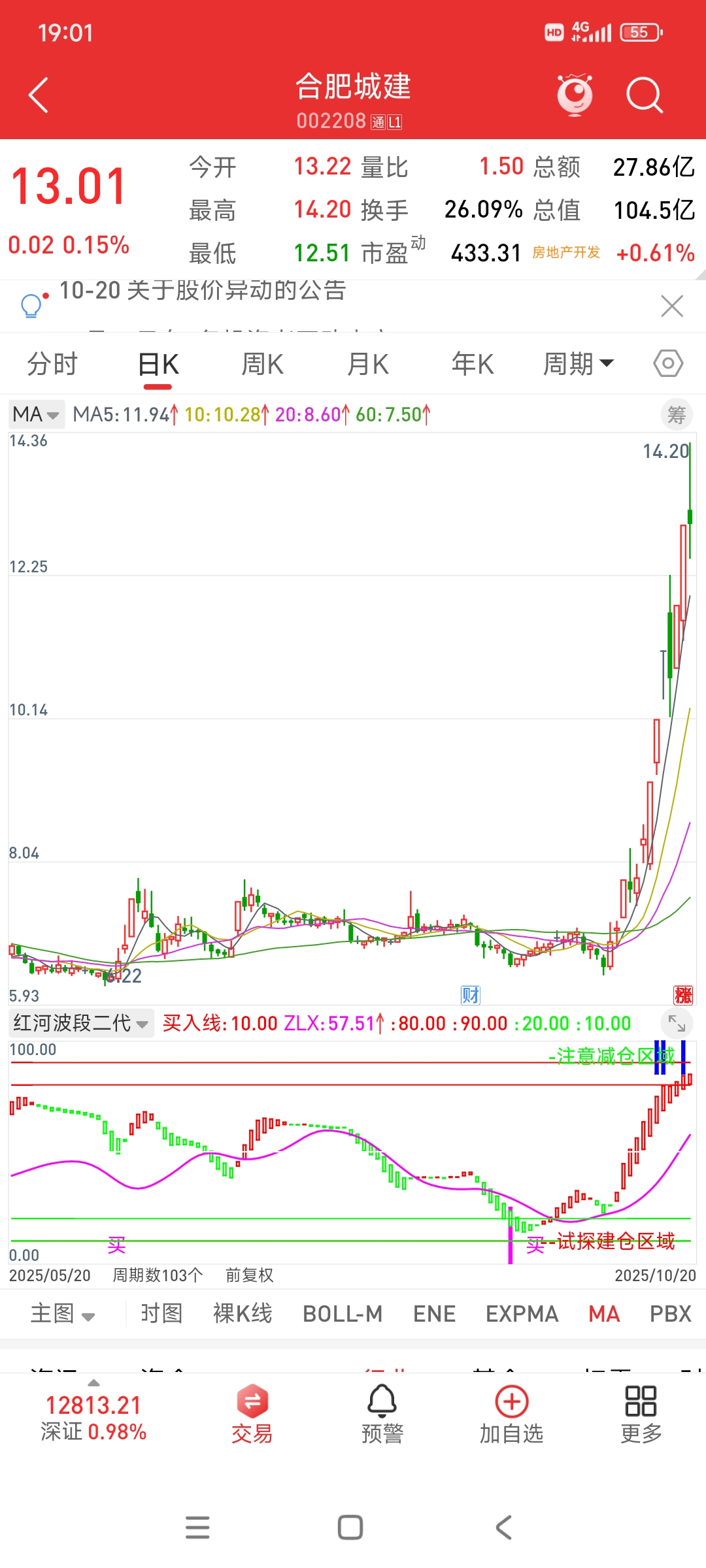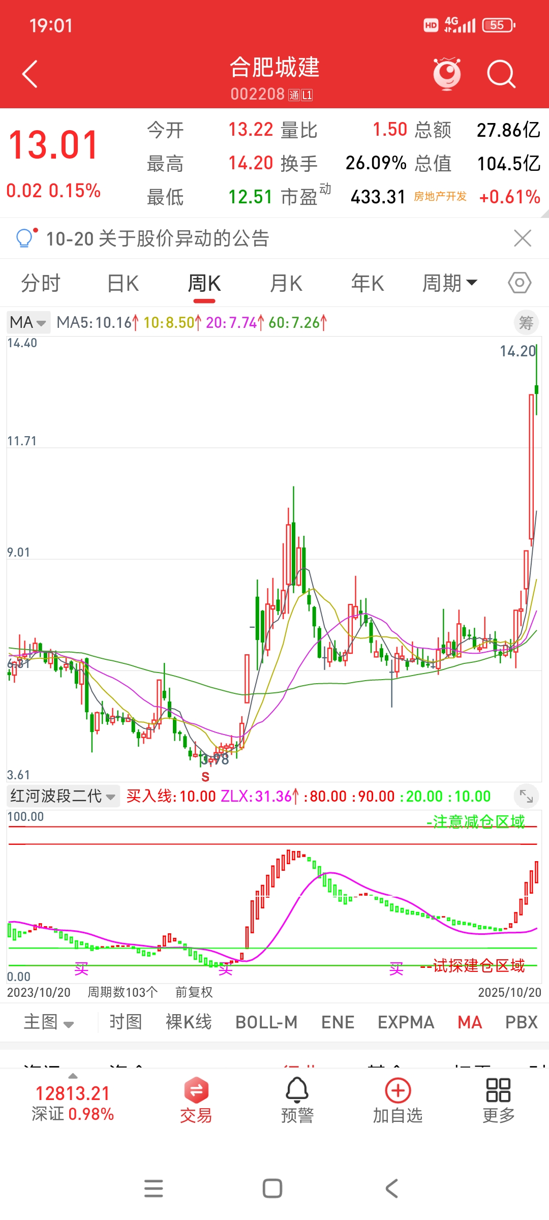 这票我一直在强调,周线和日线都是红柱延续,短期也许会有回调,但是大方向一定是都是