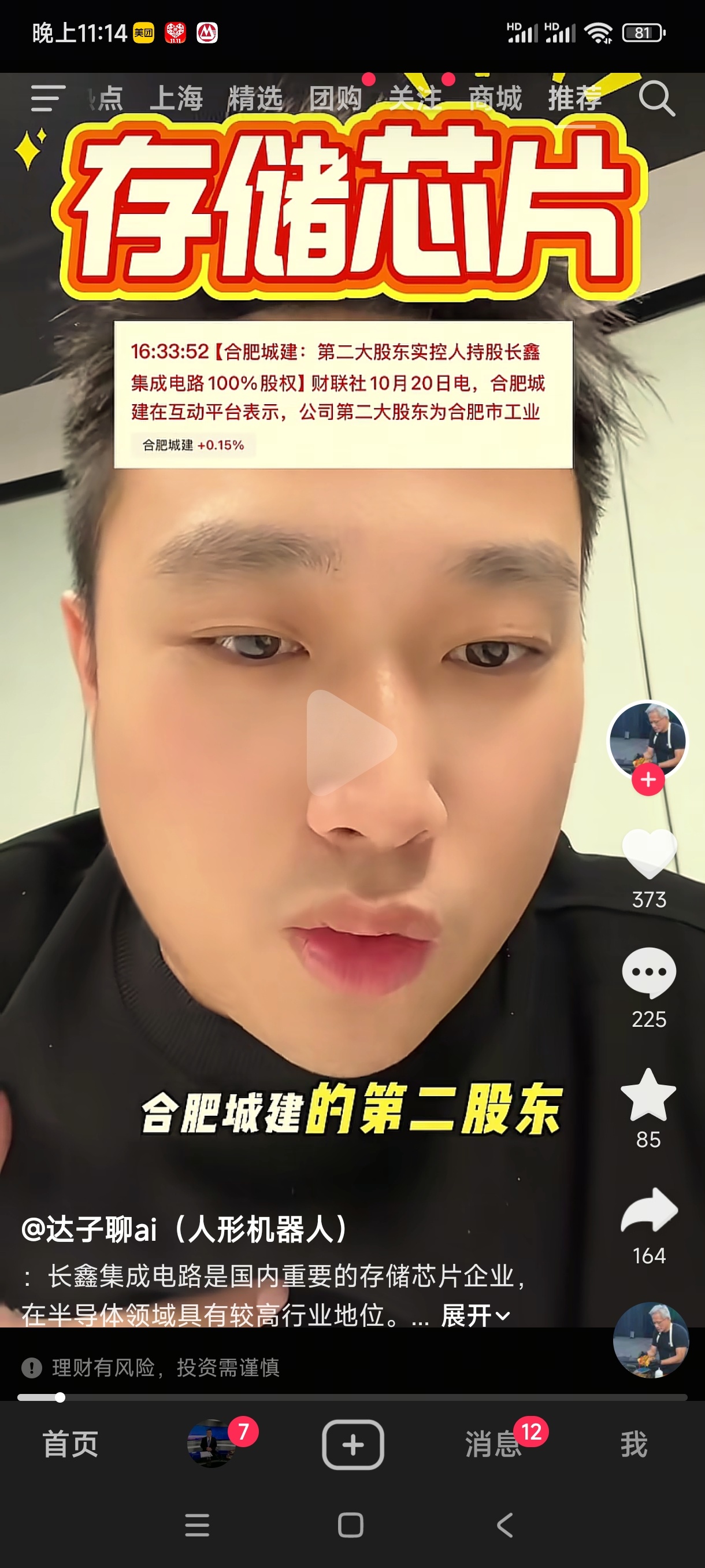 完蛋了,抖音主播开始推荐合肥城建了