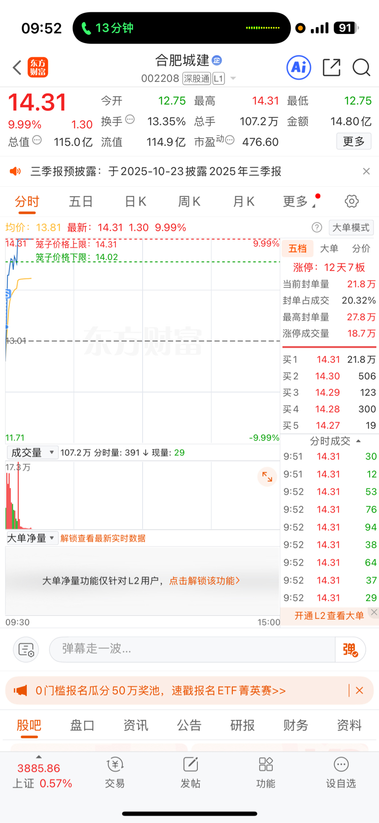 $合肥城建(SZ002208)$ 卖飞了,以为是出货
