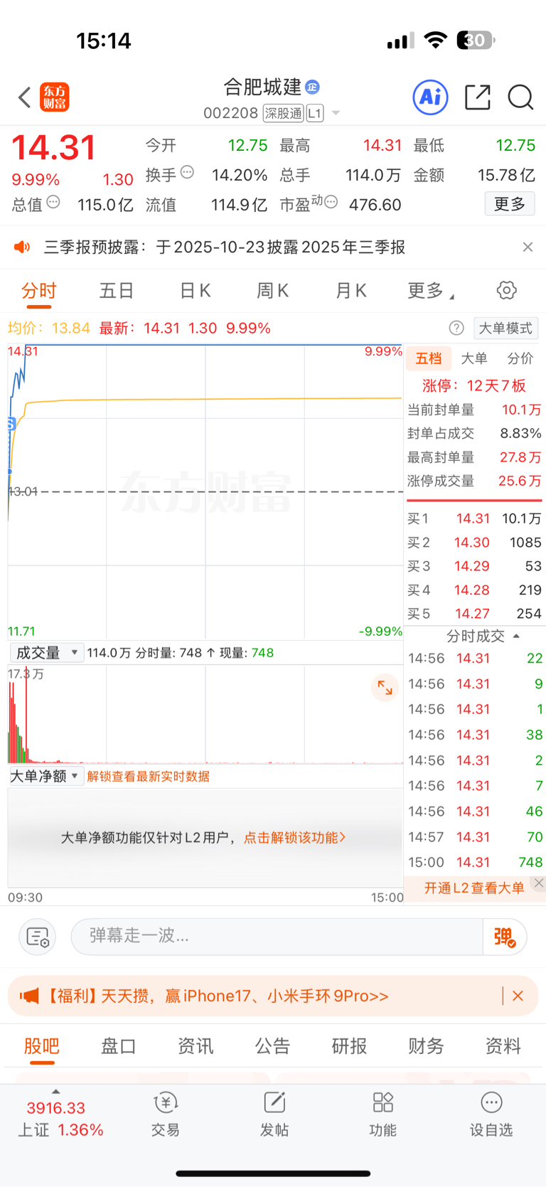 $合肥城建(SZ002208)$ 卖飞了,以为又要出货了,至少15个点没了