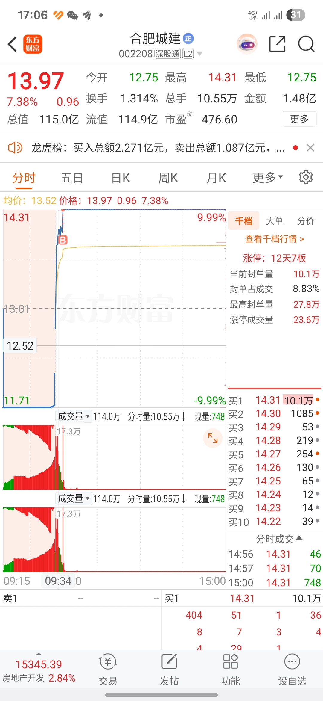 $合肥城建(SZ002208)$ 大有吃了三个板,今天满仓换到合肥了,合肥今天弱转强,确实买点,早盘盯杂毛去了,没有买。其实今天大有可以在断板回封接回来,但是想想算了,七板是个坎,还是合肥的换手更充分点,七个点准备买的,但是不符合纪律,追高迟早要还回去,还是封板确定性大一点。也就三个点的利润。#炒股日记#