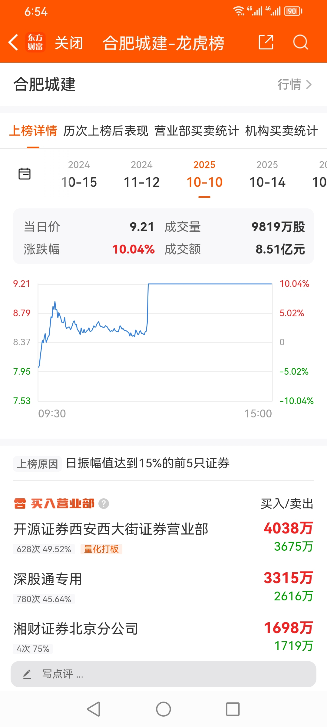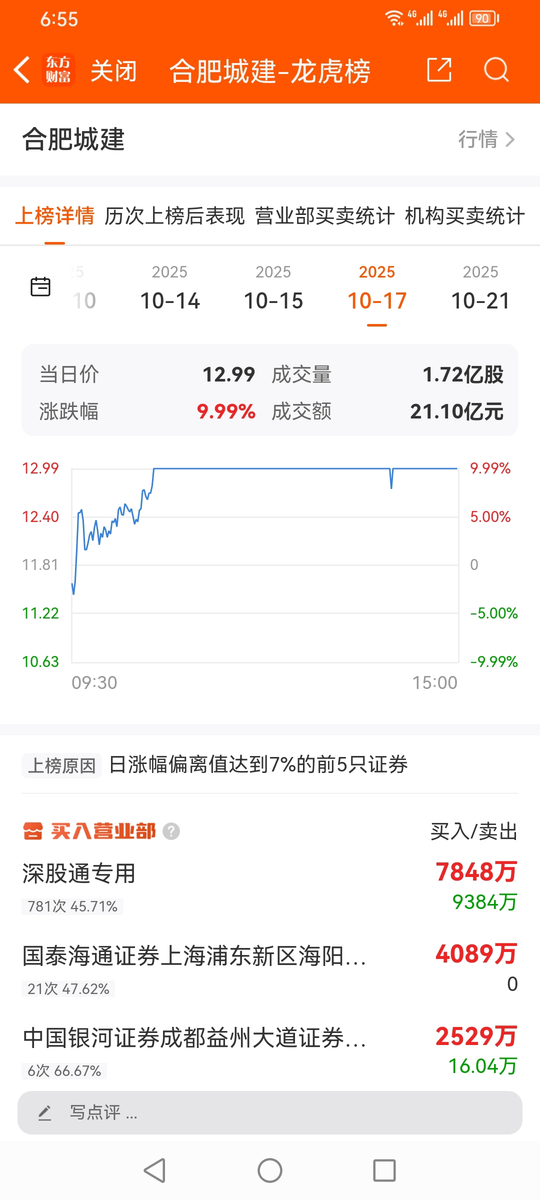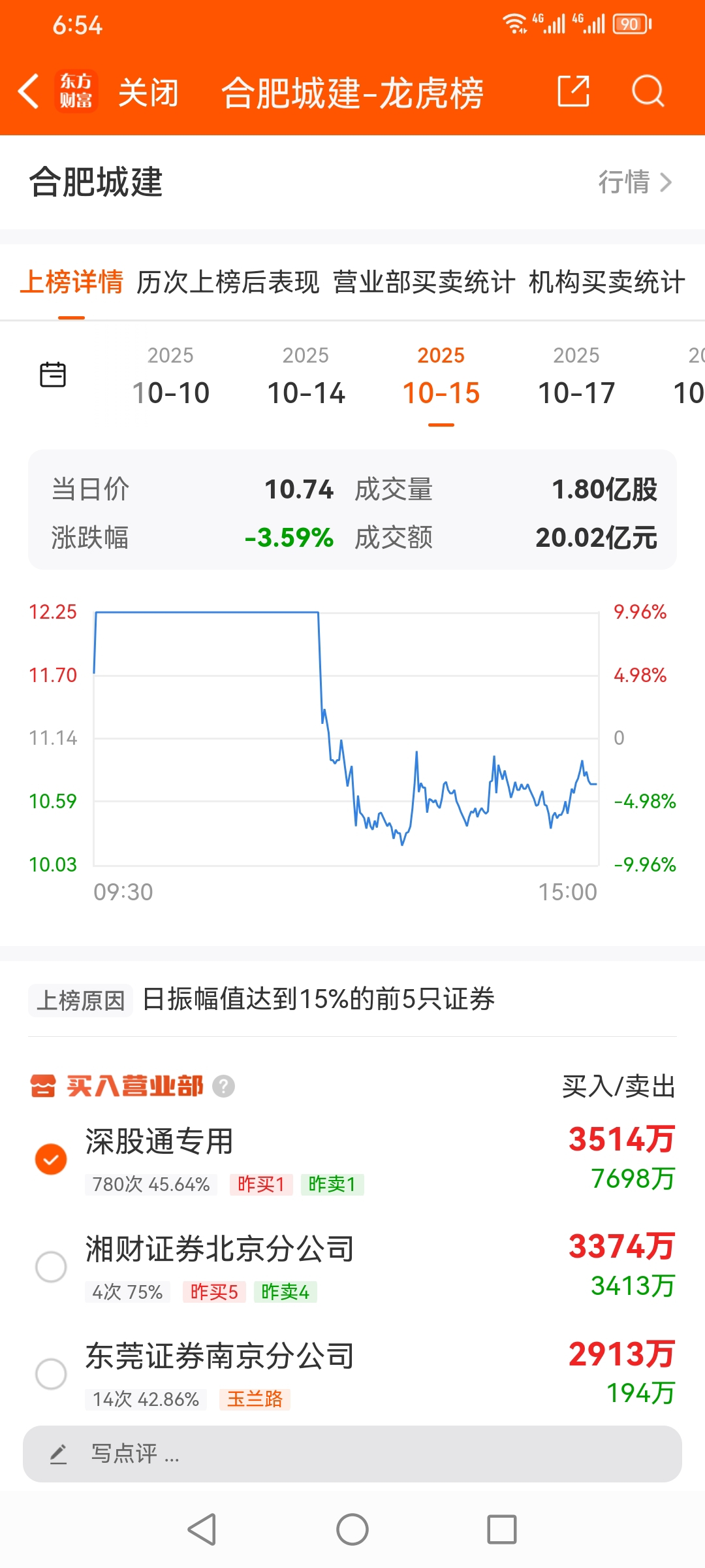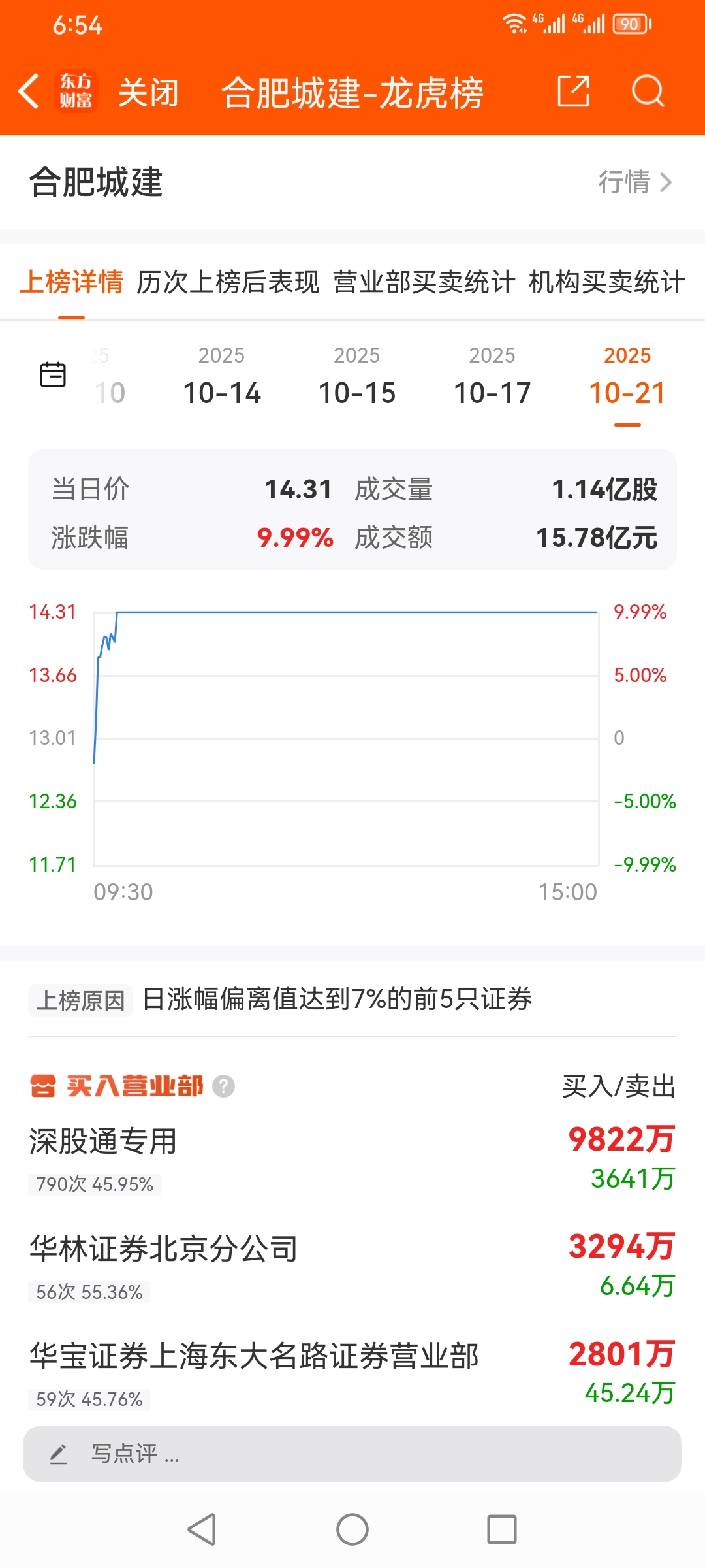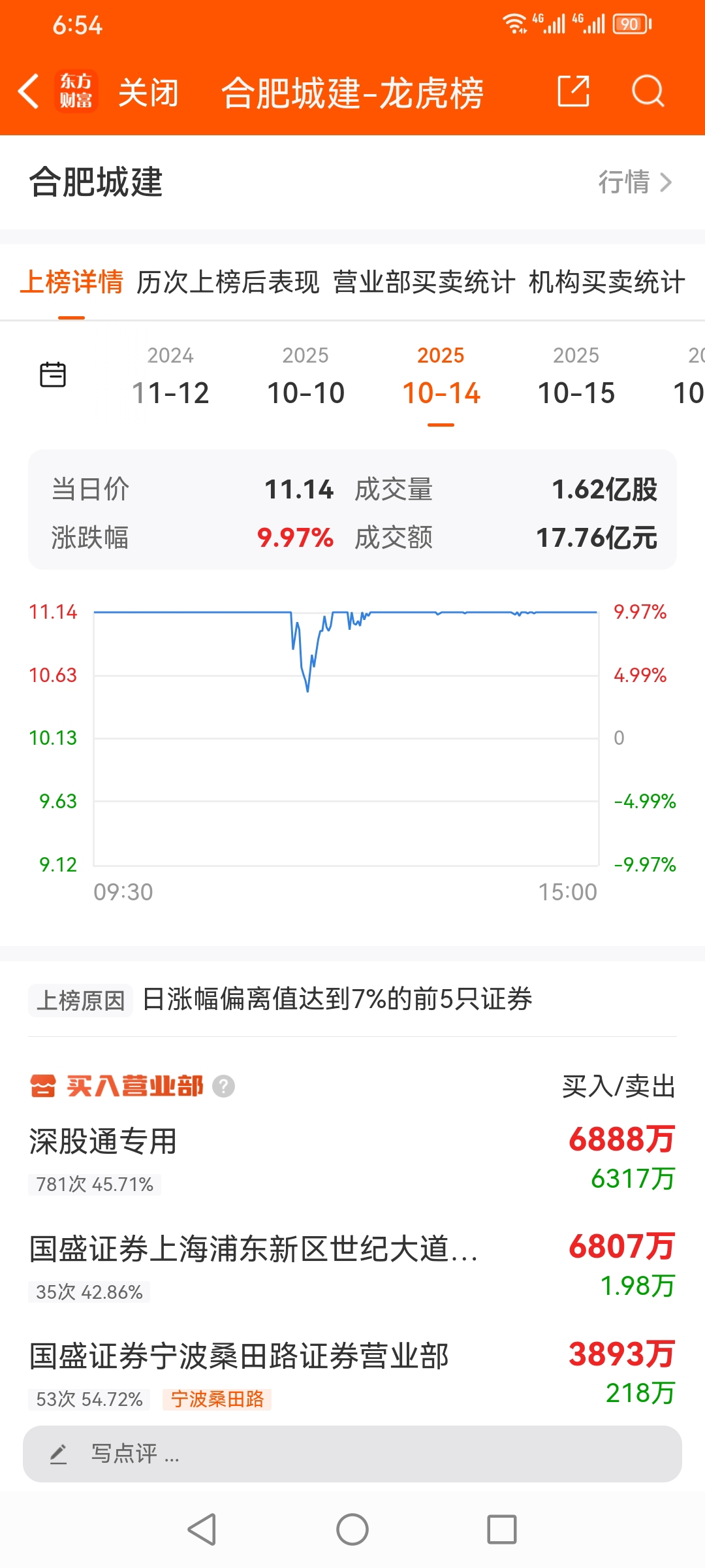 军哥,10月龙虎榜股票,合肥城建,散户 游资 机构 买进