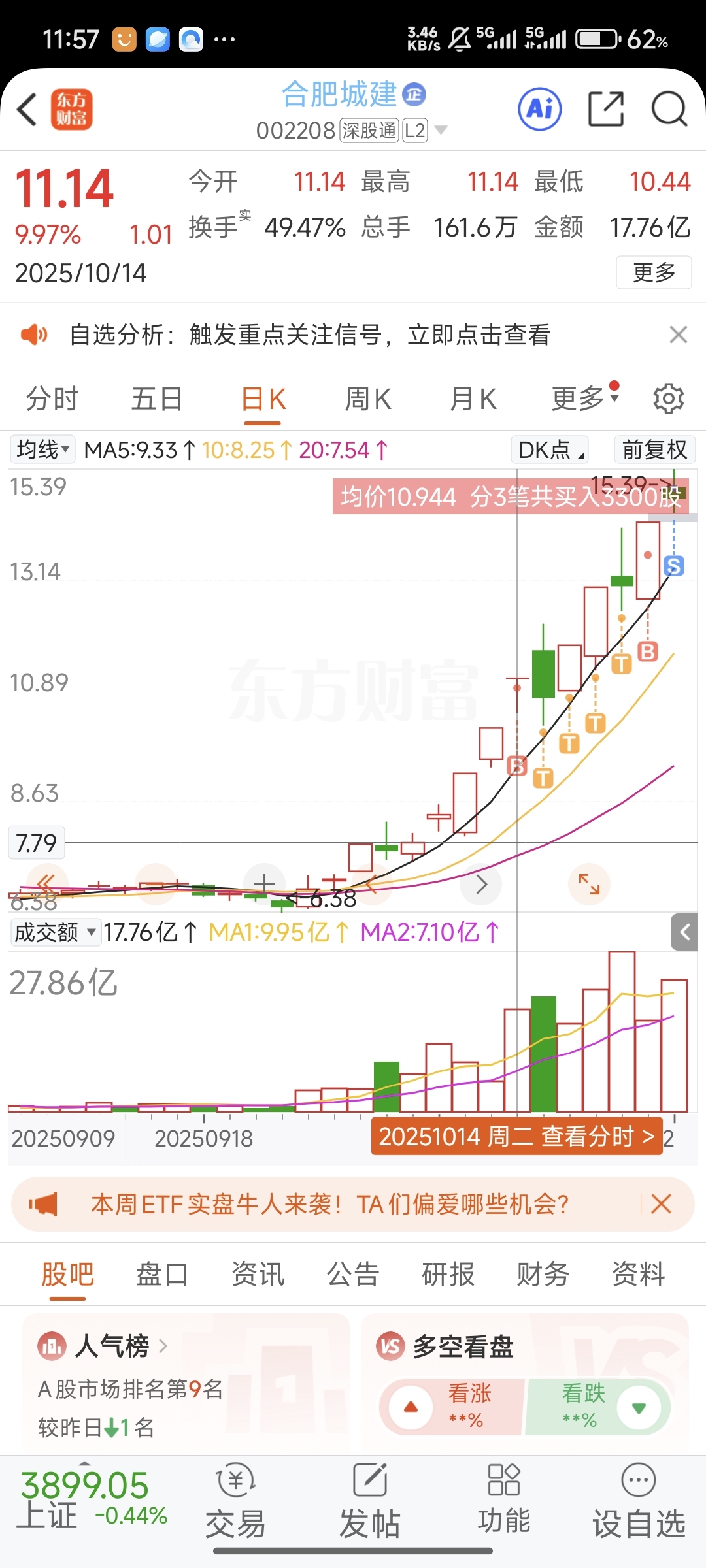 $合肥城建(SZ002208)$ 爽吃50个点了