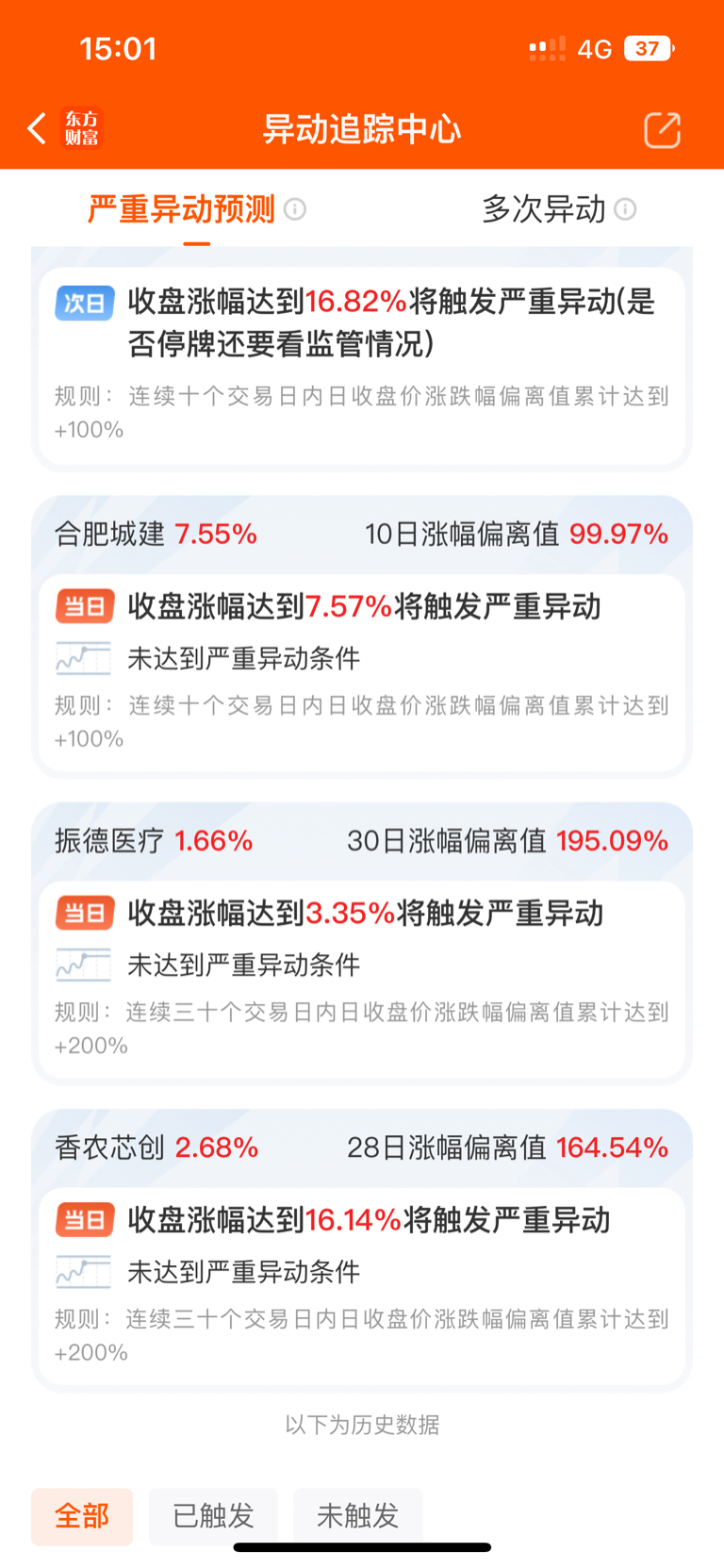 $合肥城建(SZ002208)$ 今天下午盯了一下午盘,看了一场完美的控异动表演。下午集合竞价收在15.44,已经触发异动,竞价结束硬是摁回了15.39,分毫不差的避过异动,简直完美,被主力的操作佩服的五体投地