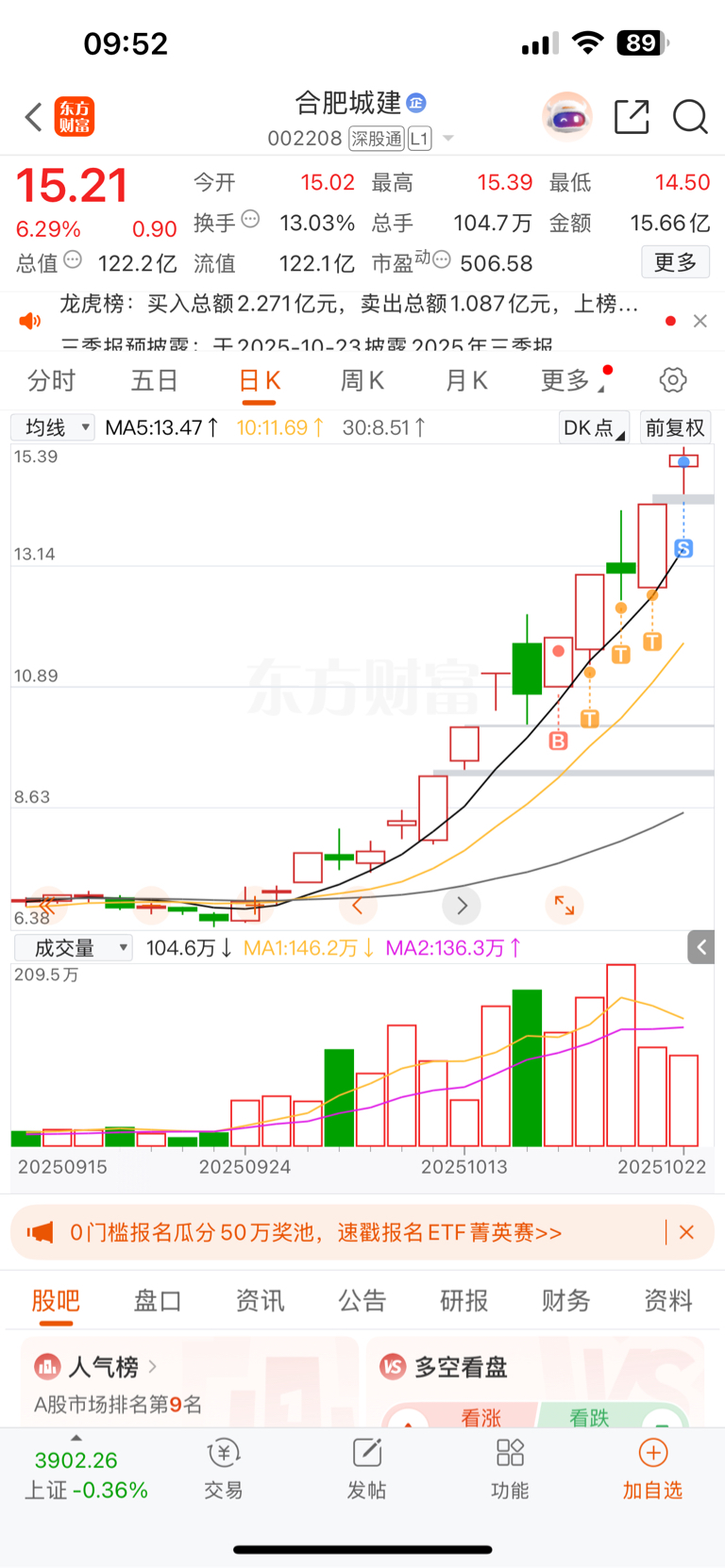 $合肥城建(SZ002208)$ 昨天说卡异动的,出来掌嘴