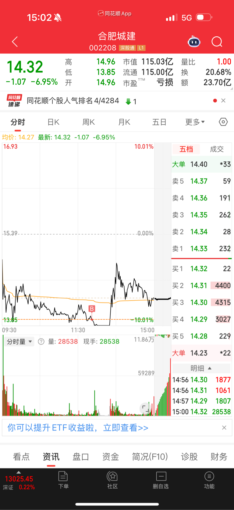 $合肥城建(SZ002208)$ 吃了两个点,不知道明天能跑吗