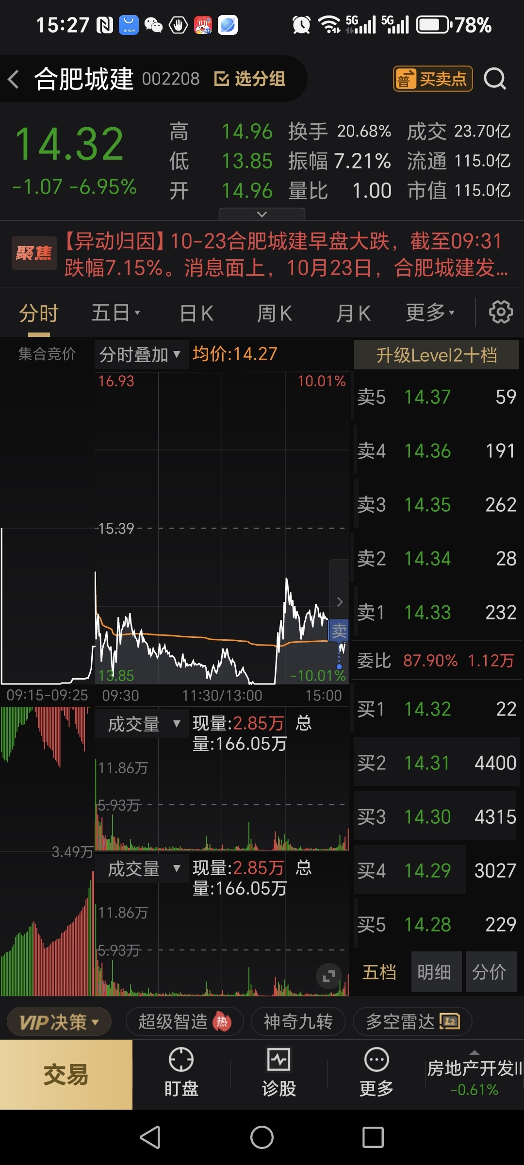 $合肥城建(SZ002208)$ 昨天没出 今天出在最低点,果然大A都是套路深