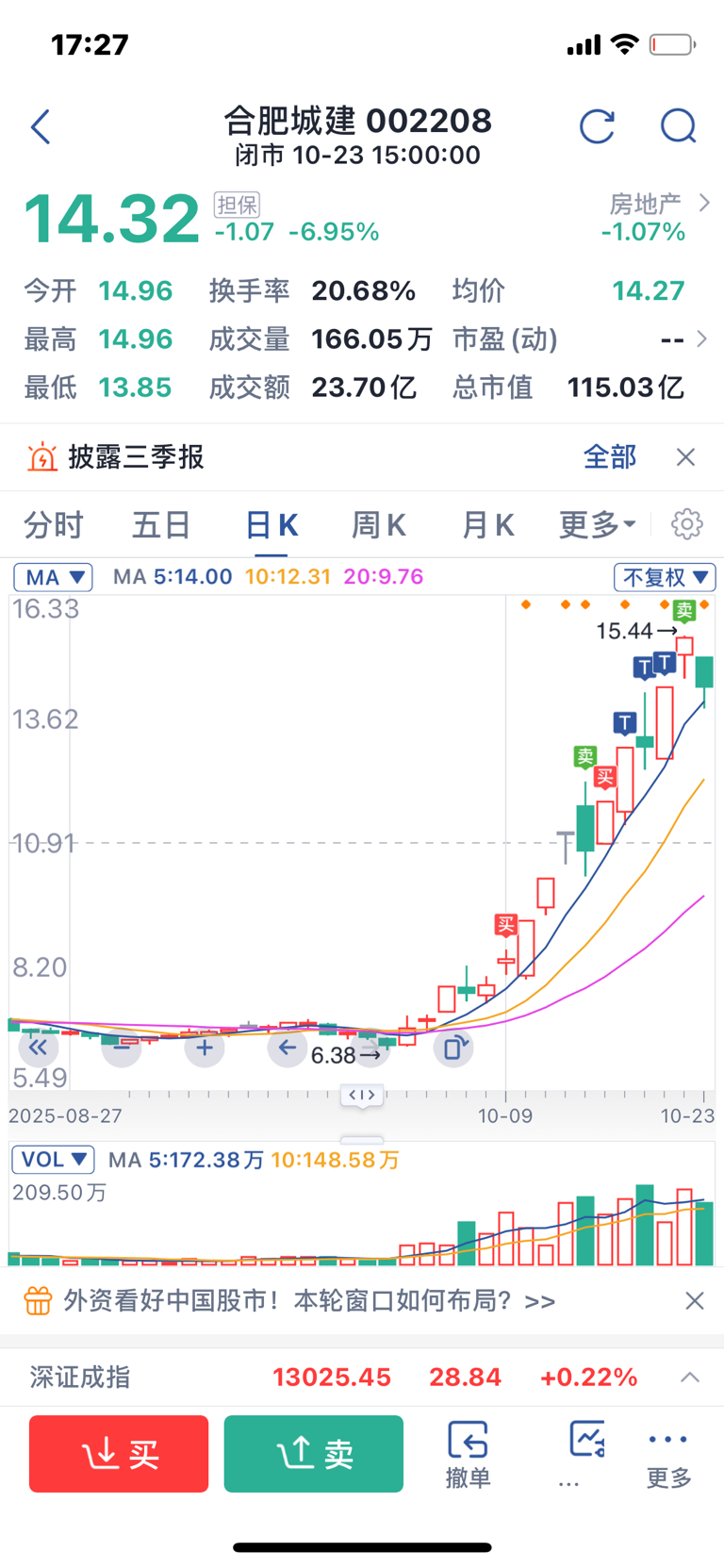 $合肥城建(SZ002208)$ 不好意思,精准逃顶。又是成功的一个案例