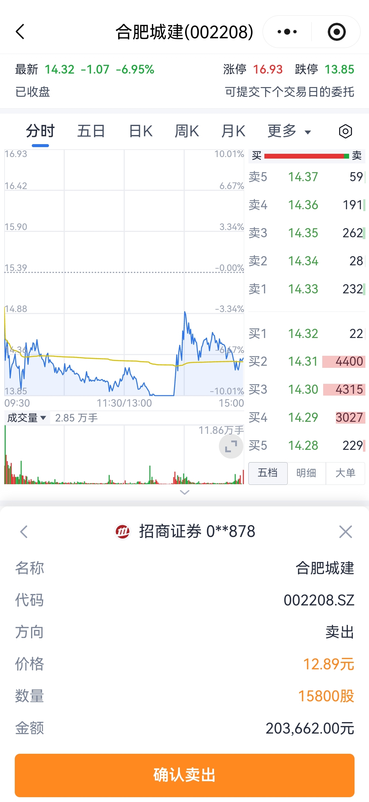 $合肥城建(SZ002208)$ 快点挂,不然连吃十个板板