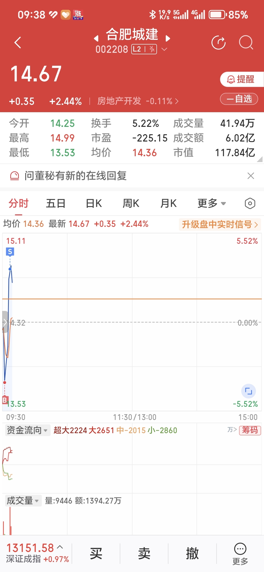 $合肥城建(SZ002208)$ 两分钟t一块,下班