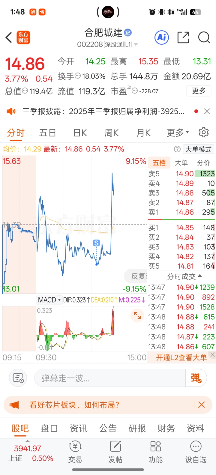 $合肥城建(SZ002208)$ 很遗憾我出局了,恭喜坚守的兄弟