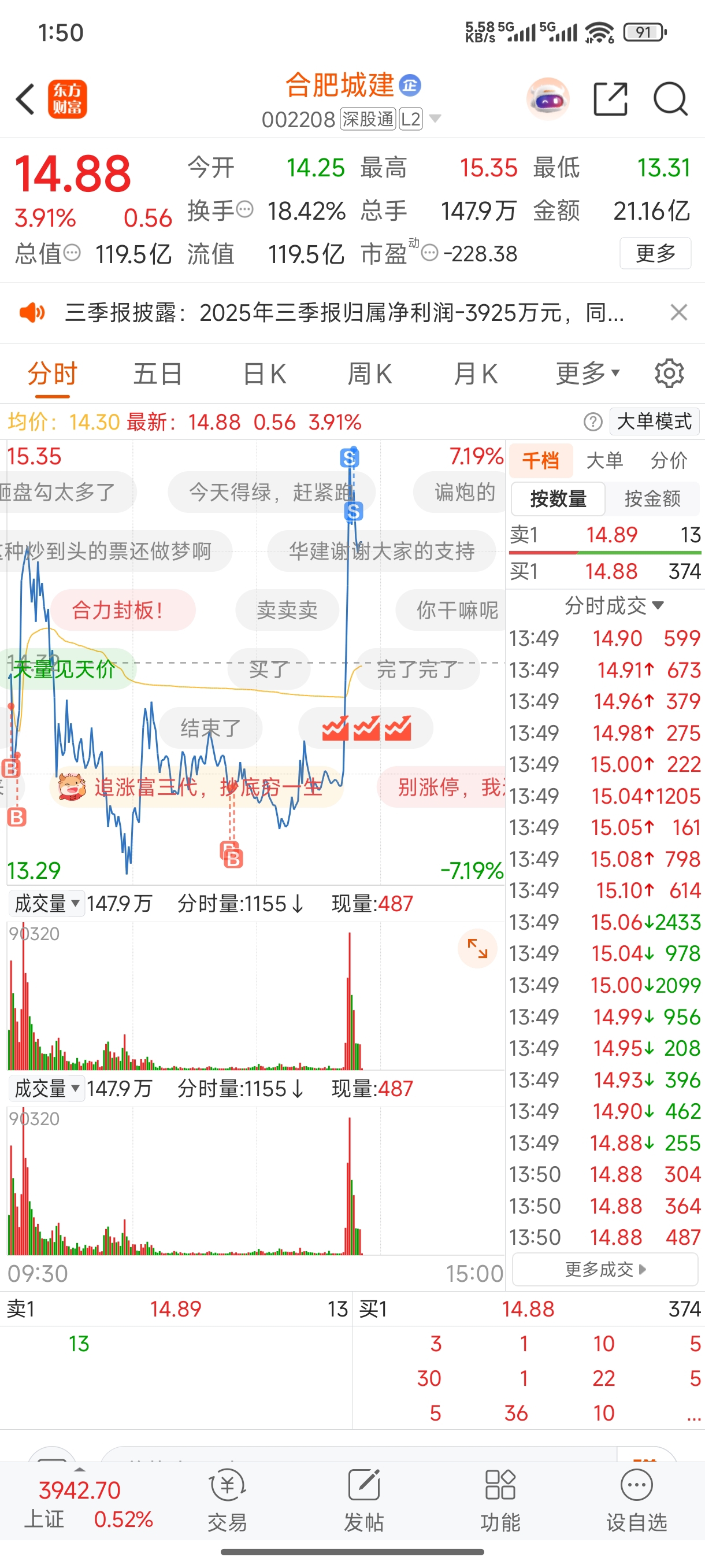 $合肥城建(SZ002208)$ 我是大学生,我先走!赶紧砸下来