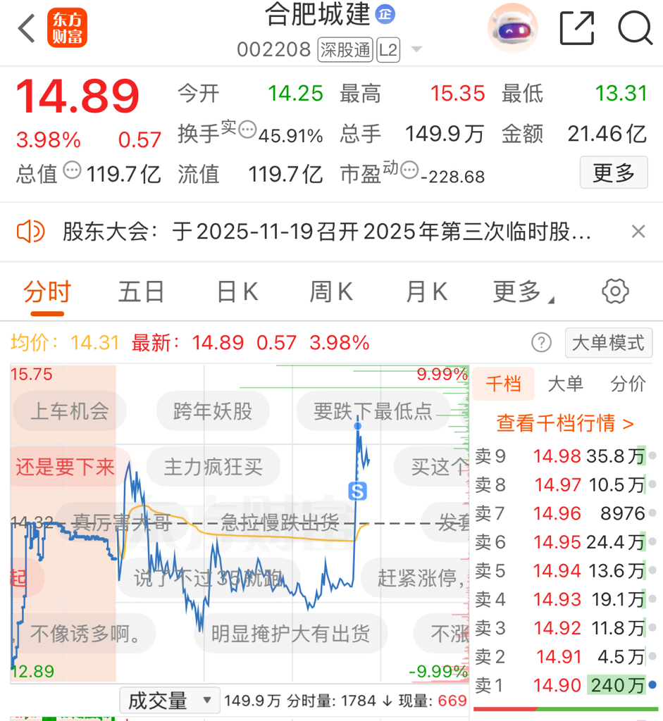 $合肥城建(SZ002208)$ 周五能拉这么高,昨天开盘价买入的,玩弱转强,但是这个主力实力有限,后面可能会走趋势,先跑了