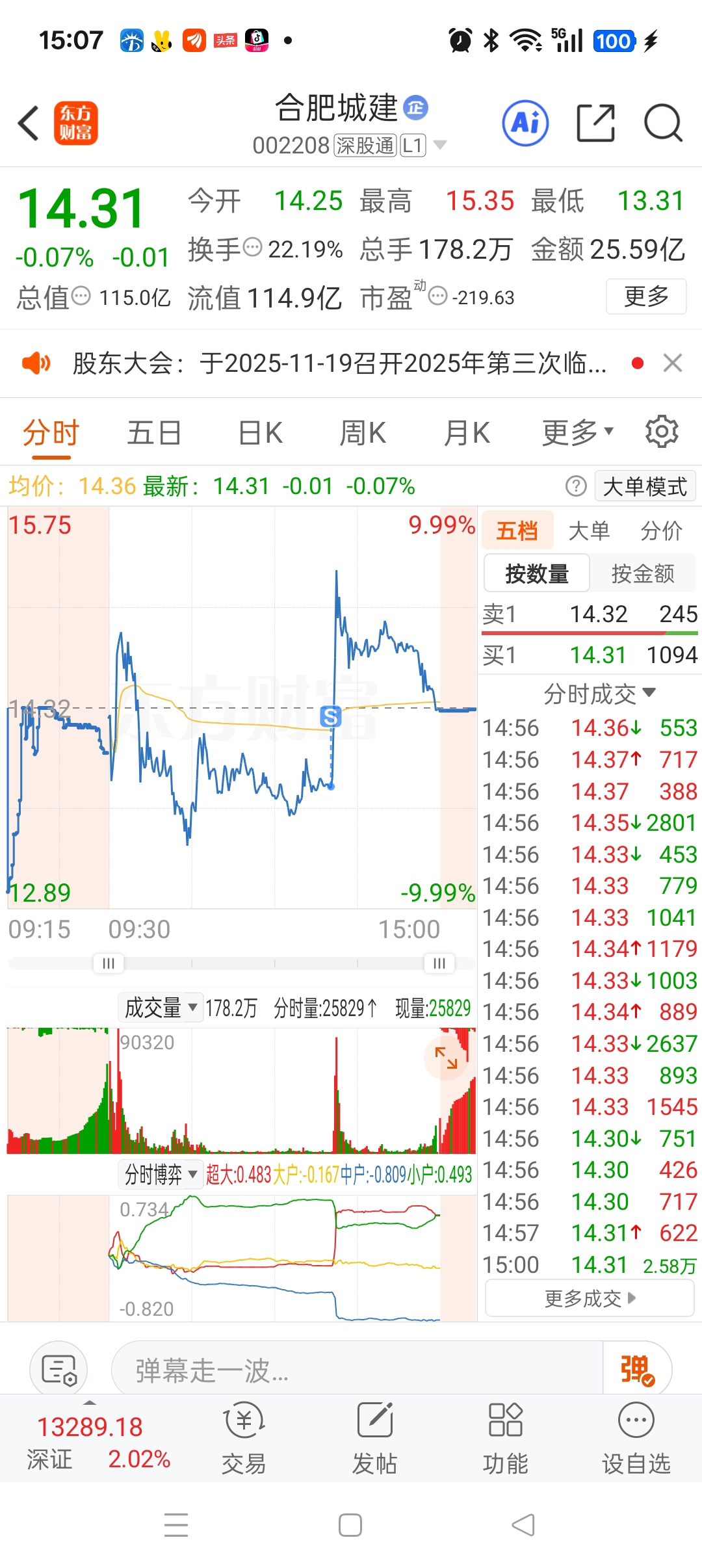 $合肥城建(SZ002208)$ 真的是被主力监控了