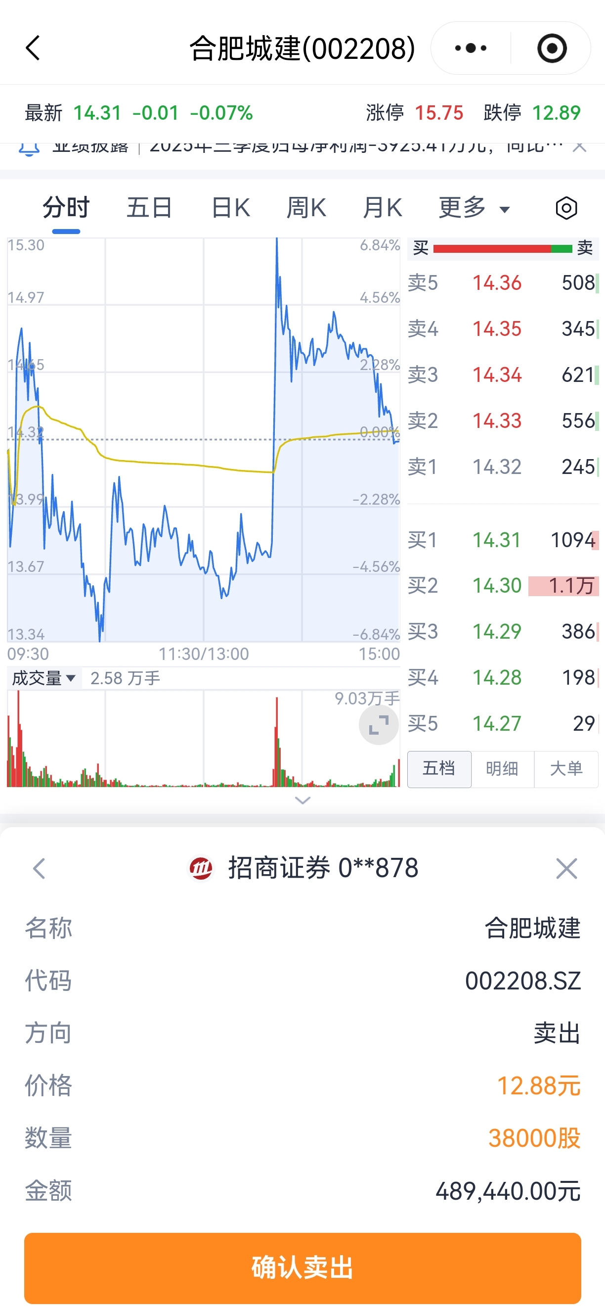 $合肥城建(SZ002208)$ 明天12.88了,能跑就赶紧跑吧