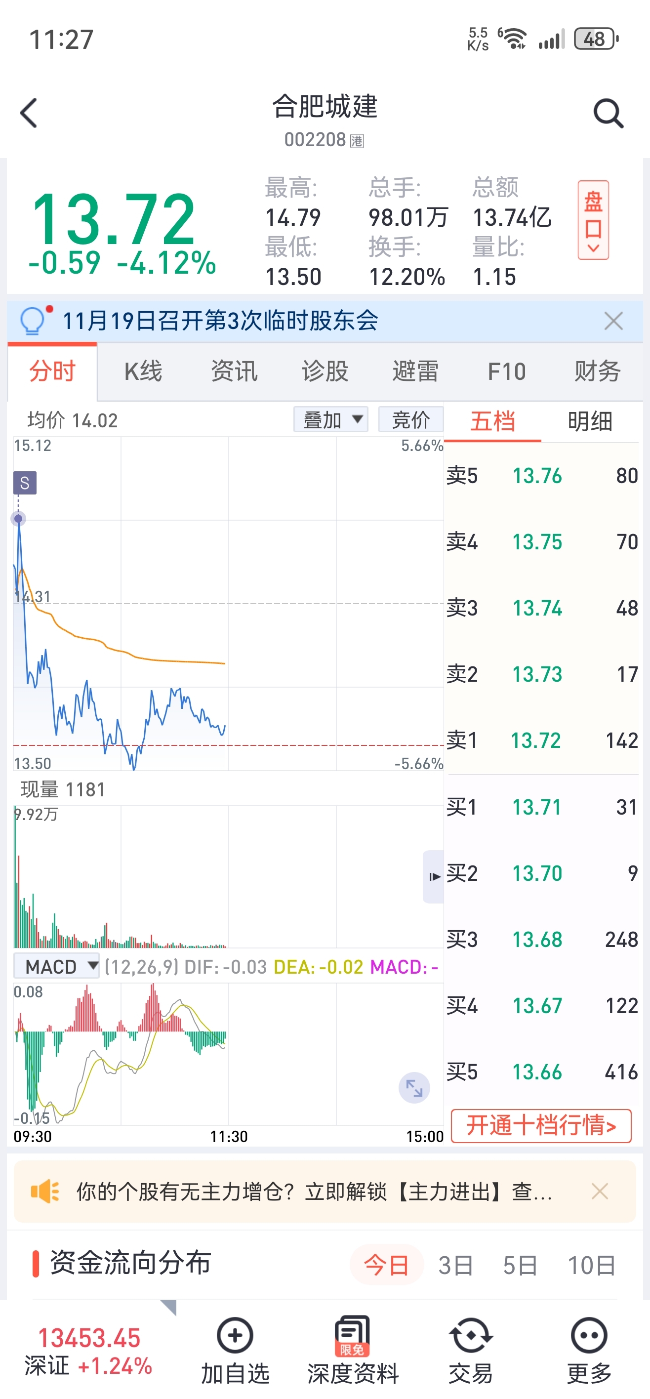 $合肥城建(SZ002208)$ 短线,周五买的,今天清了。