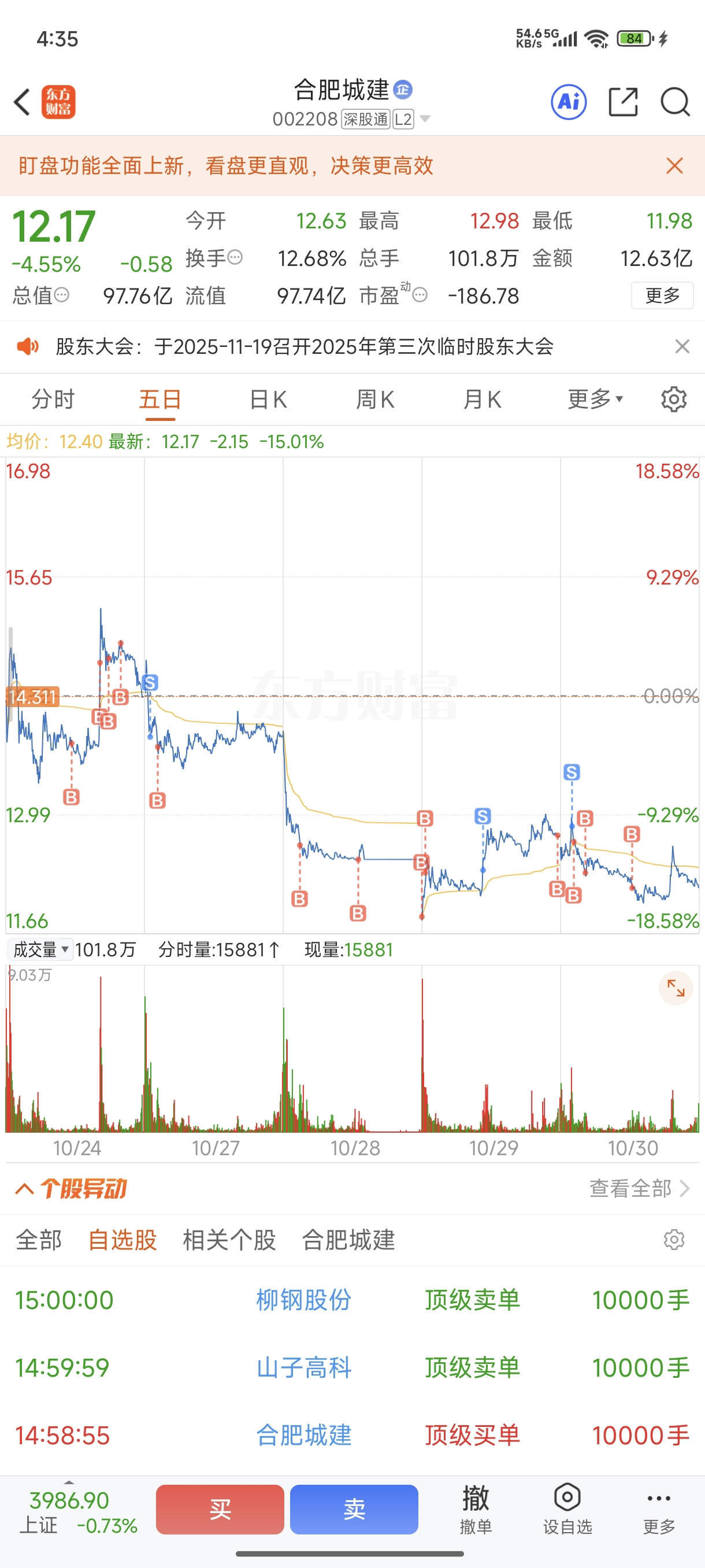 $合肥城建(SZ002208)$ 一天一万还能充值两天