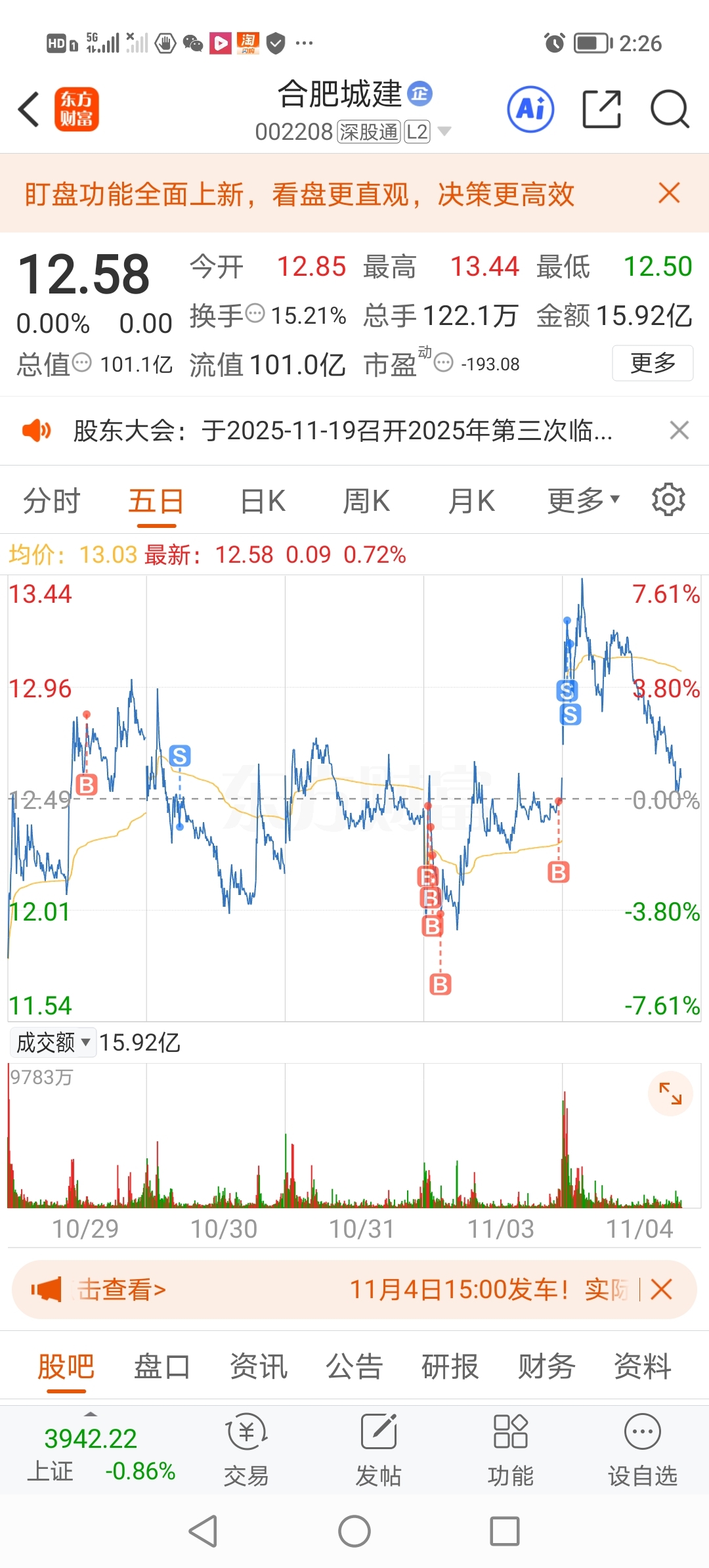 $合肥城建(SZ002208)$ 早上卖早了还好一顿后悔
