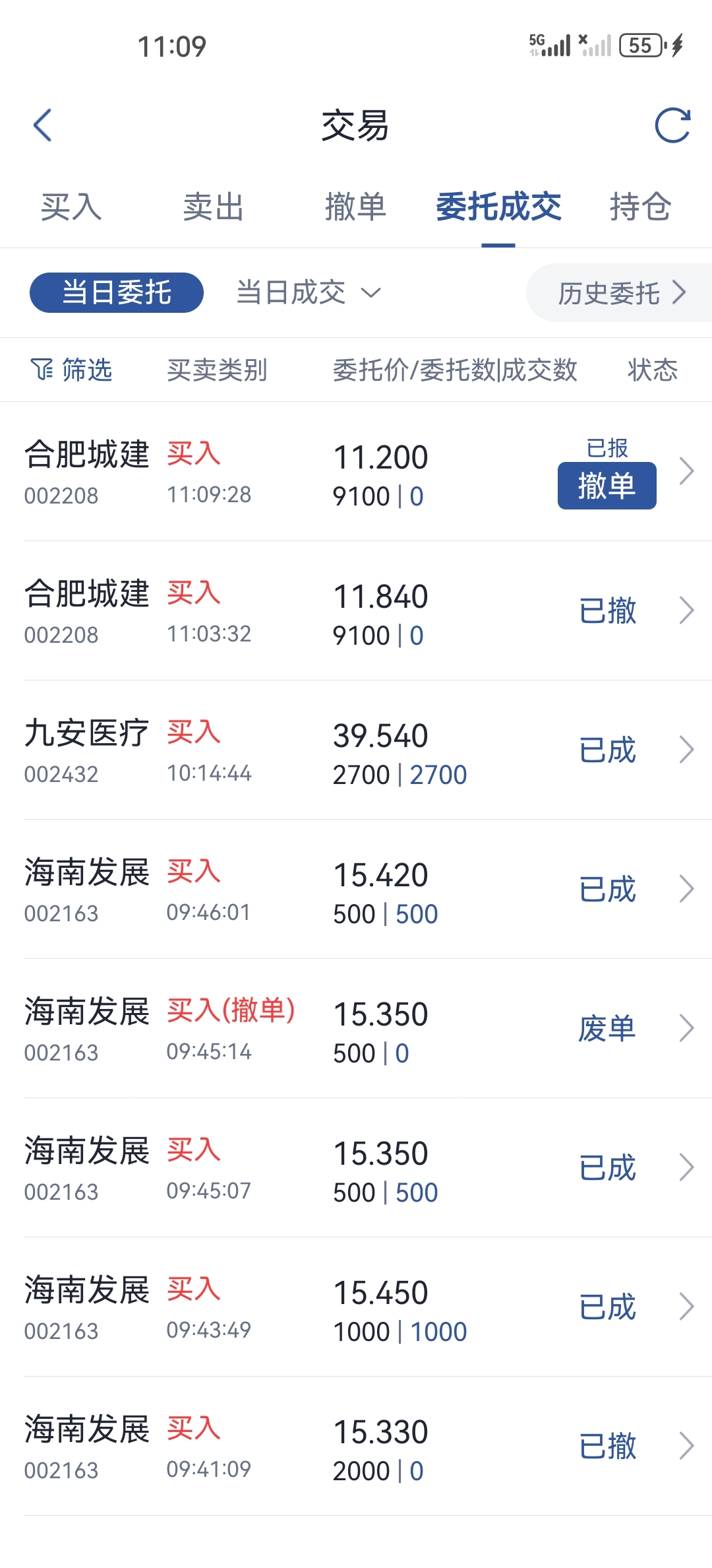 $合肥城建(SZ002208)$ 今天就这样了,看看主力给不给机会