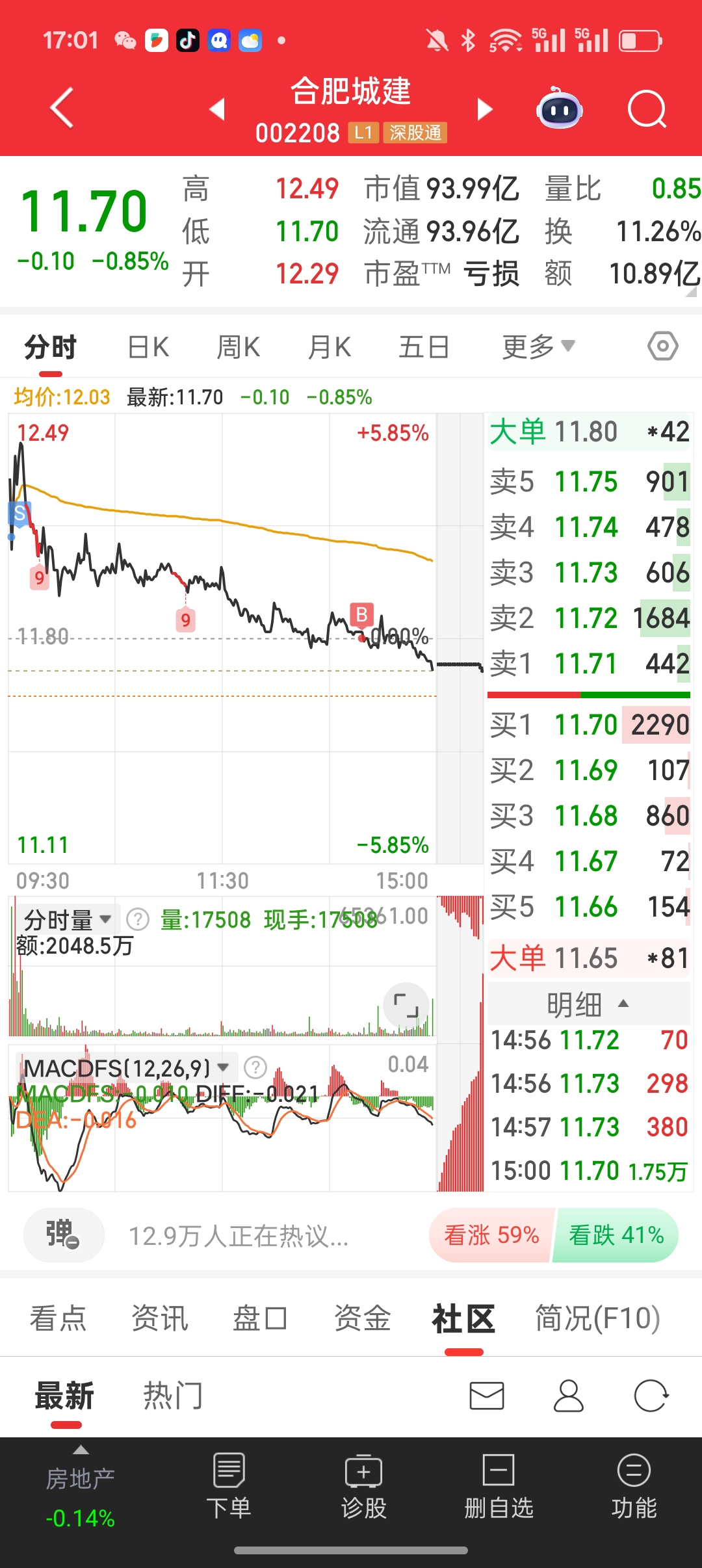 $合肥城建(SZ002208)$ 今天开盘卖出,尾盘买入,我T!明天低开再加仓!