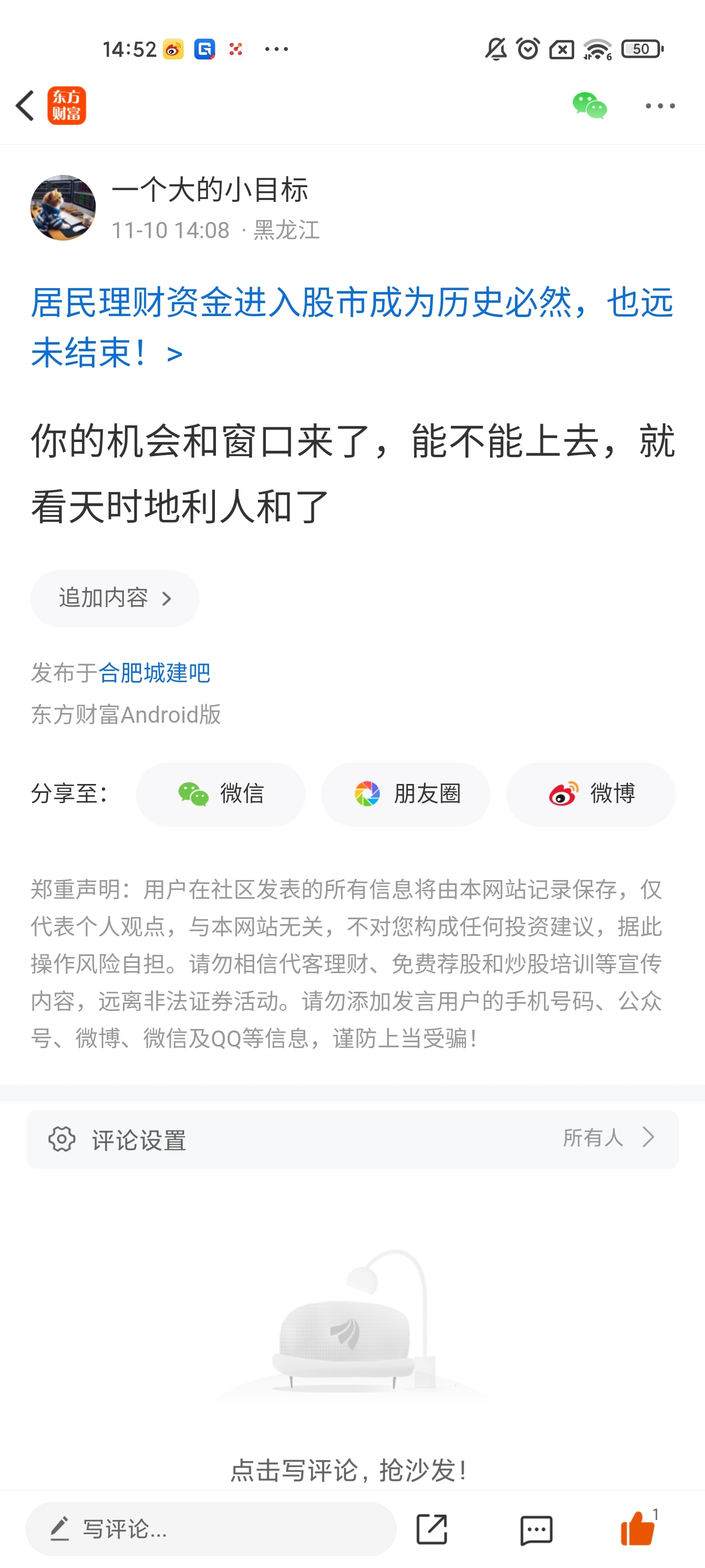 温馨提示: 1.根据《证券法》规定,禁止编造、传播虚假信息或者误导性信息,扰乱证券市场;2.用户在本社区发表的所有资料、言论等仅代表个人观点,与本网站立场无关,不对您构成任何投资建议。用户应基于自己的独立判断,自行决定证券投资并承担相应风险。《东方财富社区管理规定》