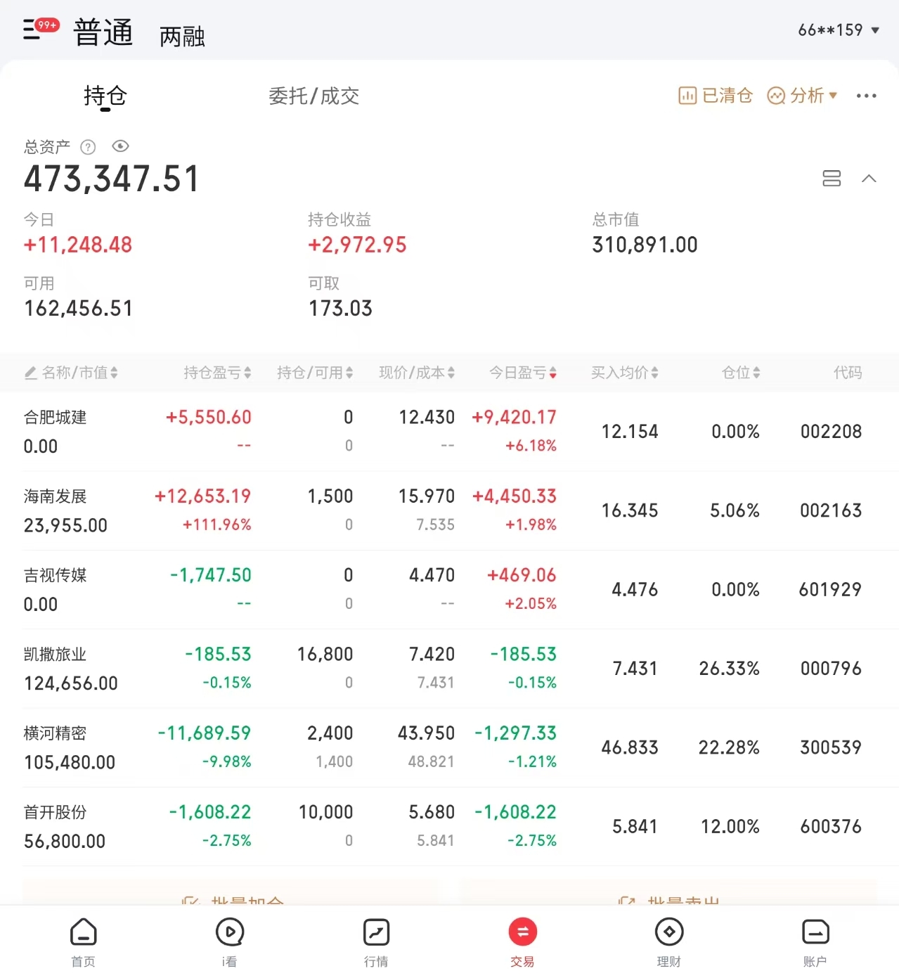 $合肥城建(SZ002208)$ 把我洗走了,留下了没有格局的眼泪!我就想看看今天的榜,哪路资金破坏了趋势结构,本来都亏的好好的,为什么要拉尾盘,我前天赚了8000都没有走的,今天尾盘6个点撤了