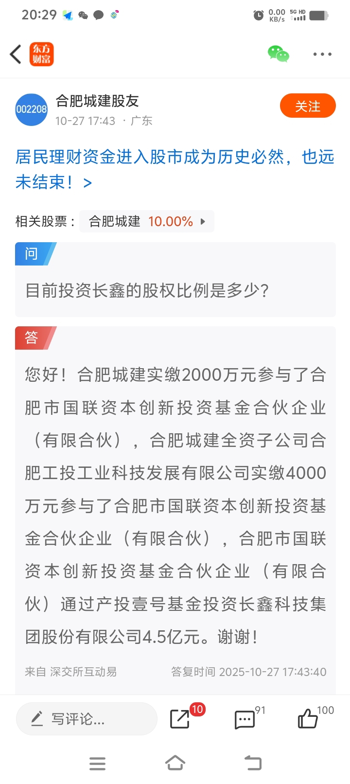 $合肥城建(SZ002208)$ 官方确认,合肥城建参股合肥长鑫