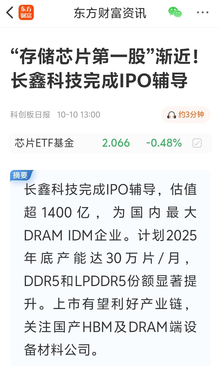 $合肥城建(SZ002208)$ 长鑫将要上市