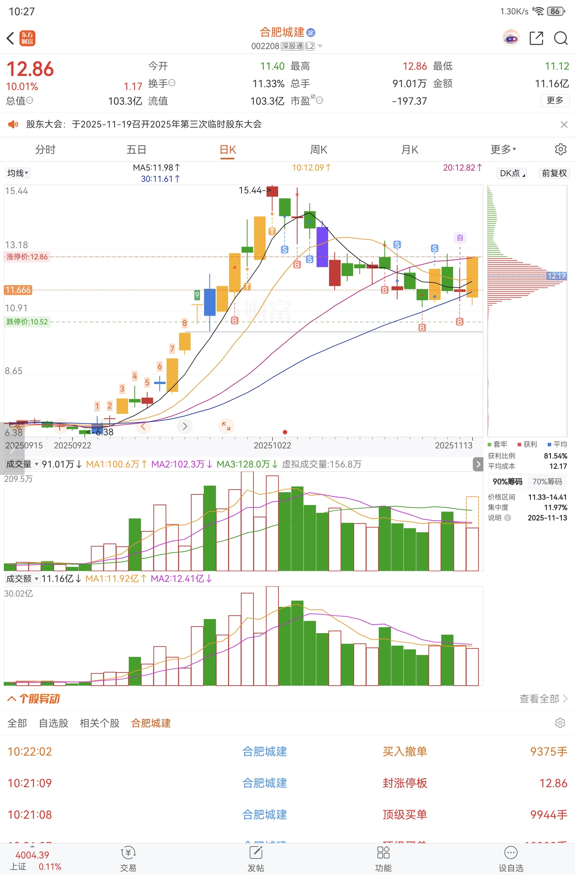 $合肥城建(SZ002208)$ 三进三出,终于看到你的底部了