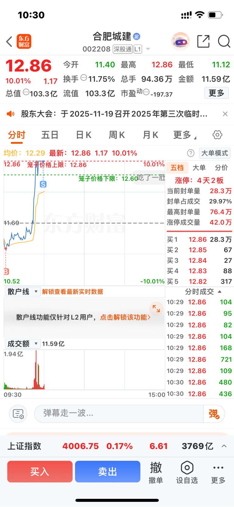 $合肥城建(SZ002208)$ 撤单骗我一半筹码