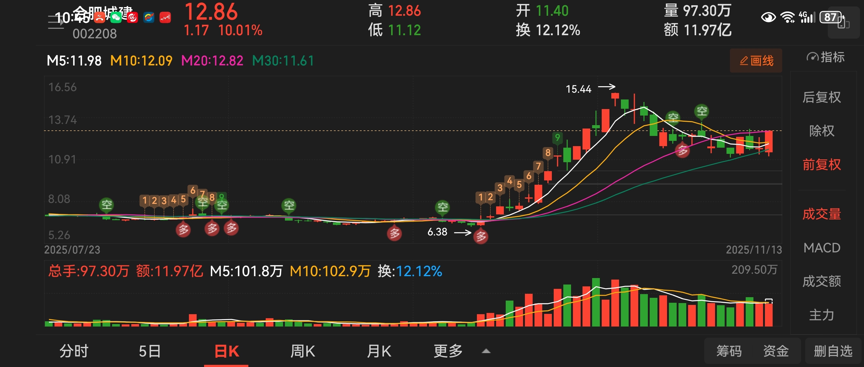 $合肥城建(SZ002208)$ 11.11号分享,恭喜反包打板成功