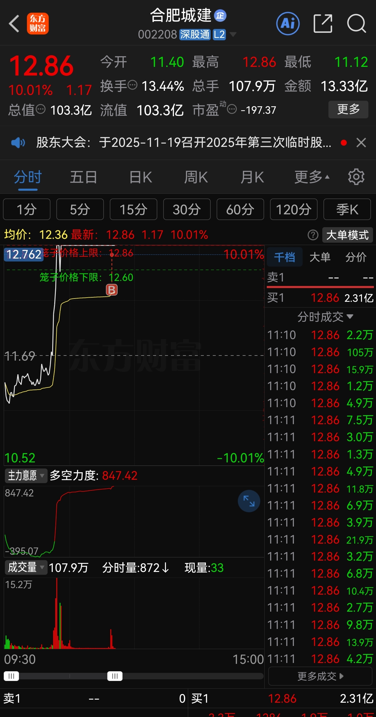 $合肥城建(SZ002208)$ 站在山顶吹风了,昨天打板进的,量化砸盘真的反人性的,真不怕,主力昨天净买入几个亿的,周一看反包!