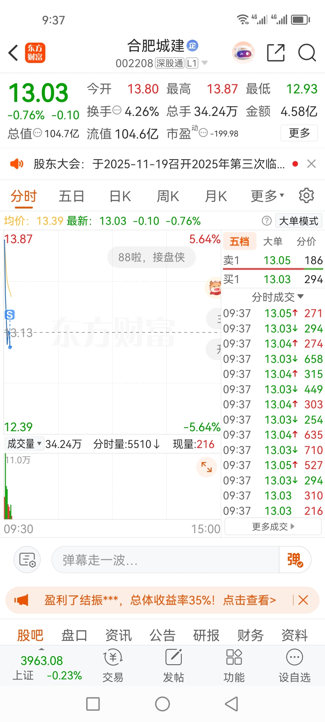 $合肥城建(SZ002208)$ 扎毛,弱爆了,集合竞价没舍得走,亏大了