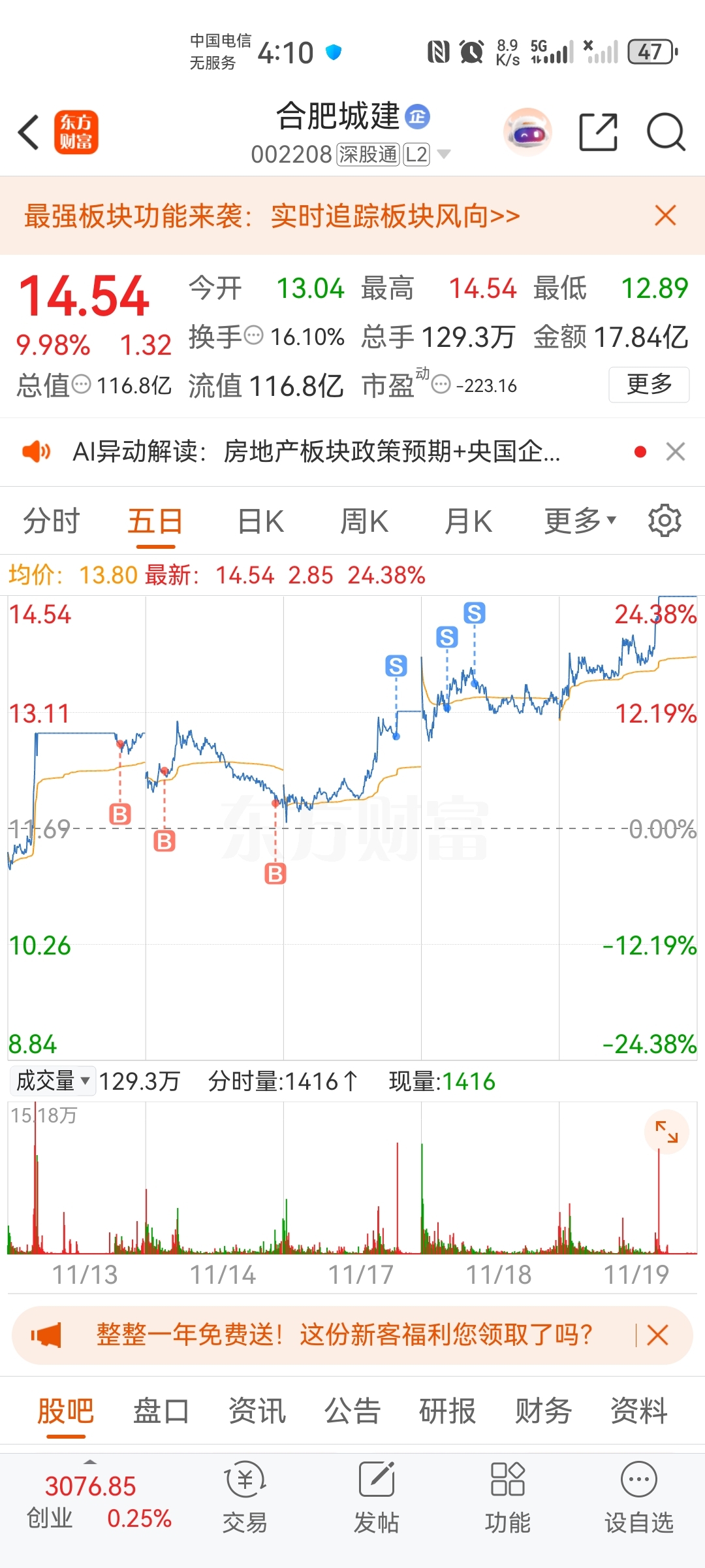 $合肥城建(SZ002208)$ 你始终是不属于我